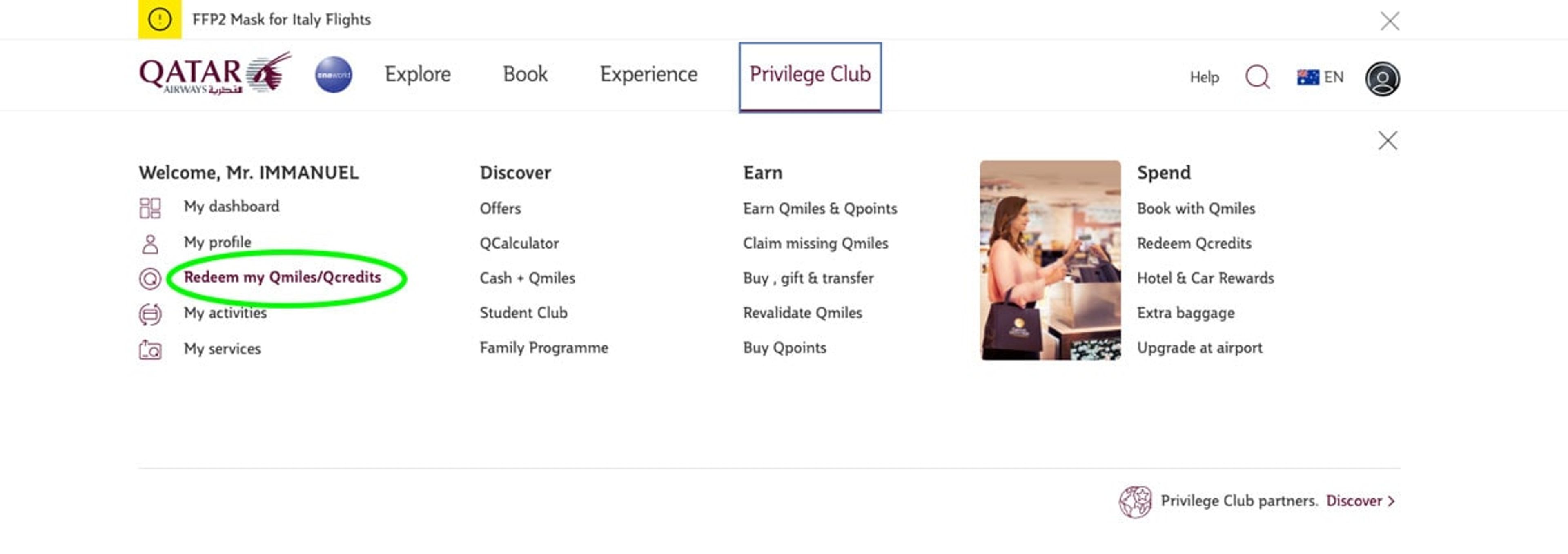 First, make sure you’re logged in, then hover over the Privilege Club Menu (ps. Life is much easier when you do these things on a computer, you’re mad trying this on mobile) and click redeem Qmiles/Qcredits.