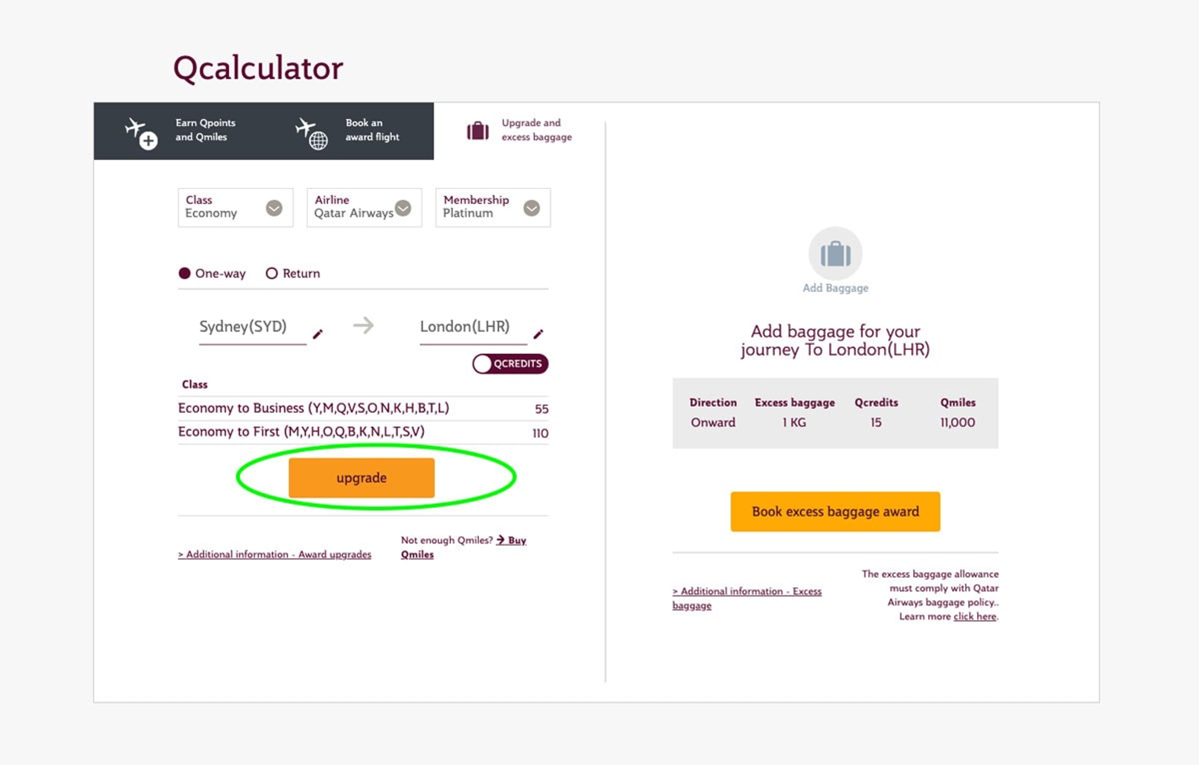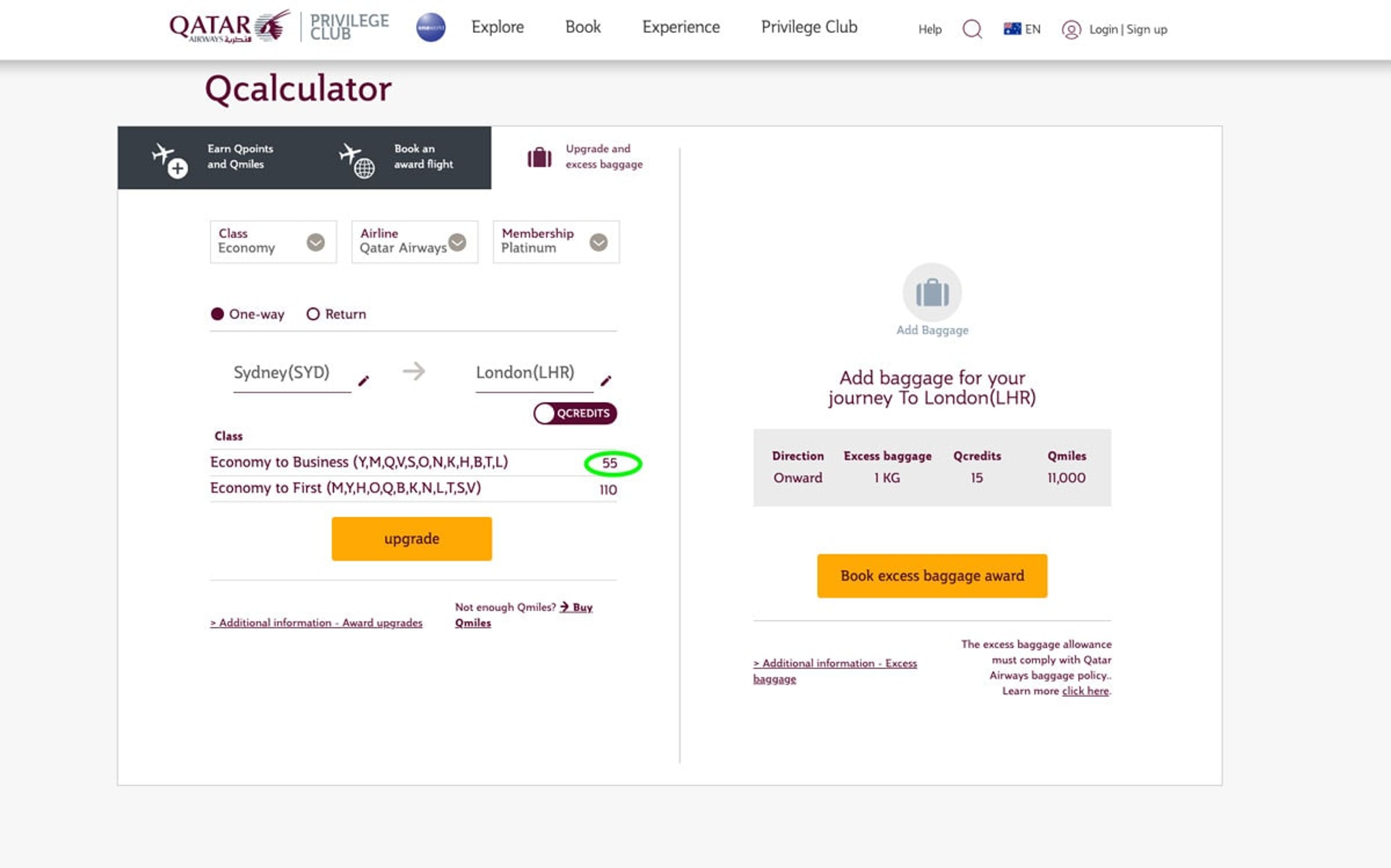To calculate the Qcredits needed to upgrade your flight, you first need to visit the Qatar Airways calculator via this link.