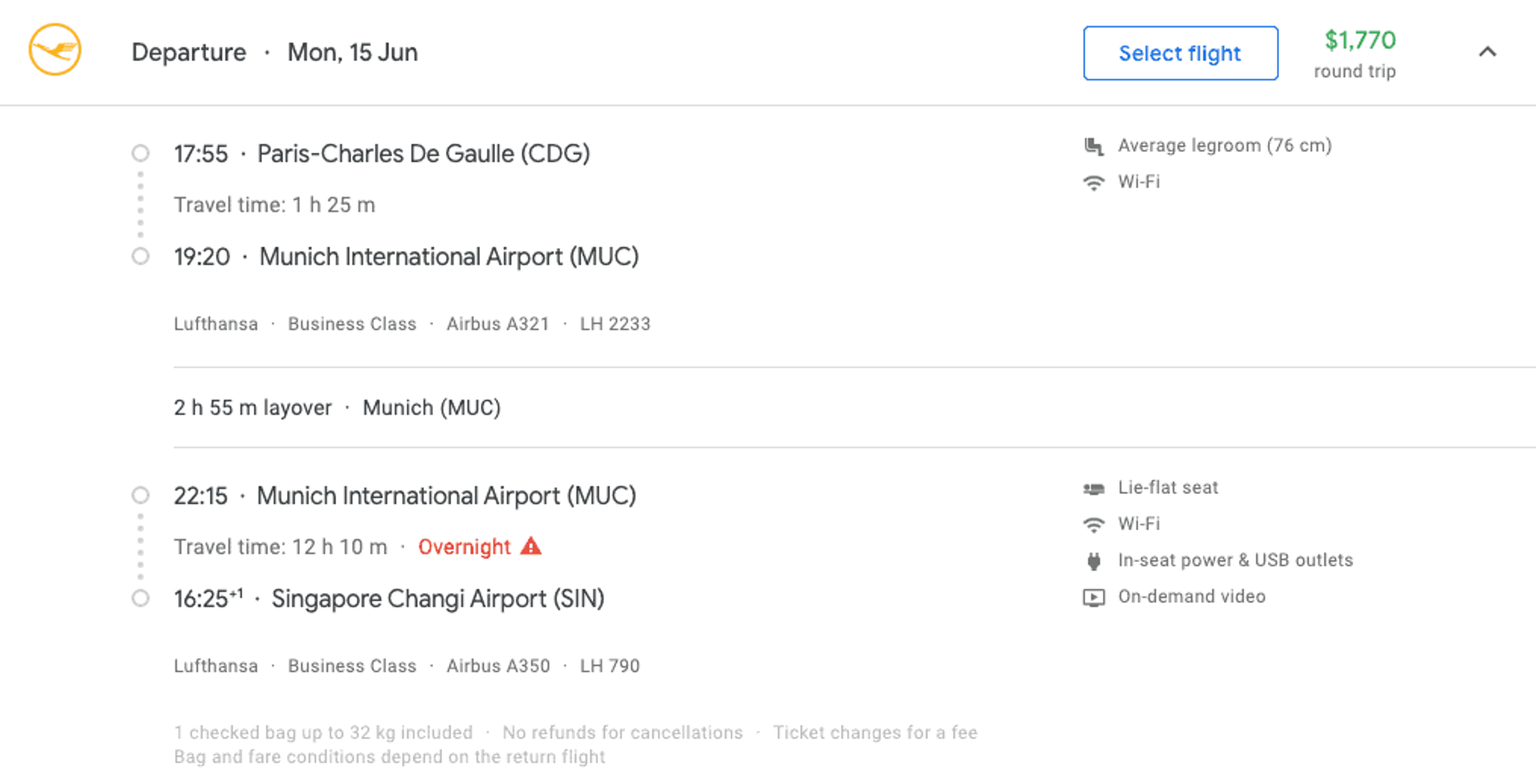 Paris to Singapore