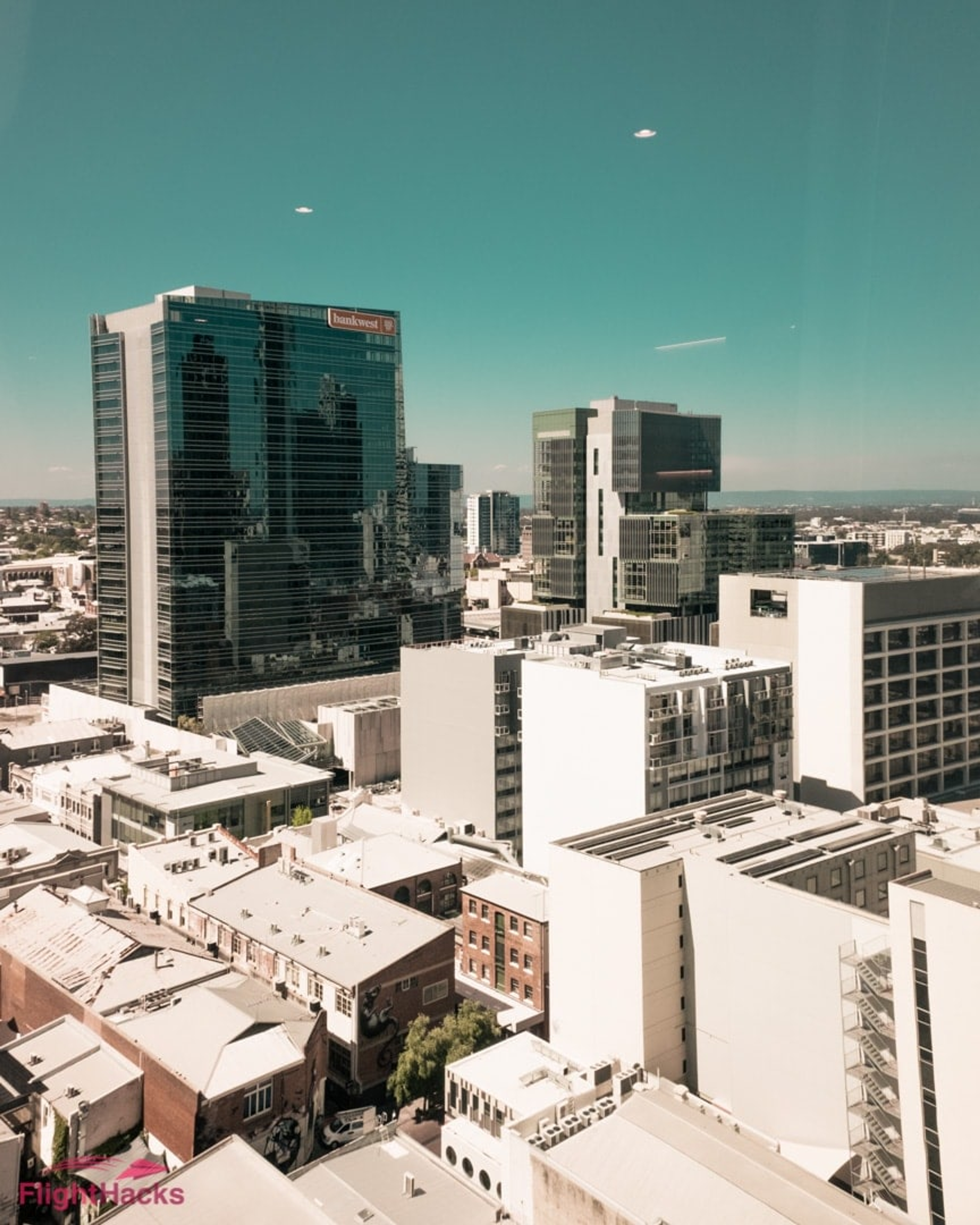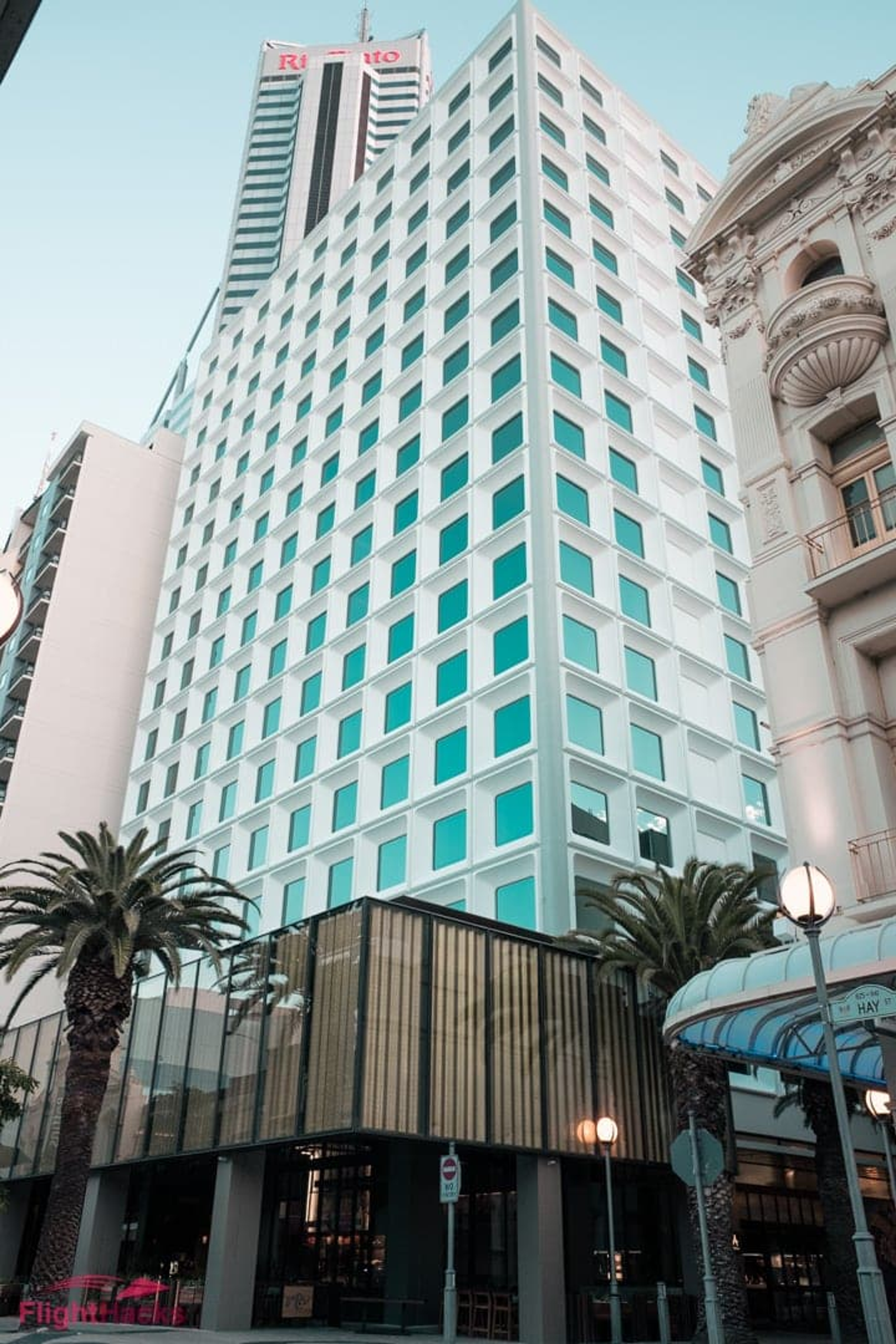 Just like most buildings in Perth, the InterContinental isn’t a masterpiece of modern architecture but rather a revamp of what use to be an old office building turned into a hotel. The 1970’s touch of rounded windows is a distinctive look, but it’s been modernised with a beautiful gold ribbon stretching around the bottom of the building.