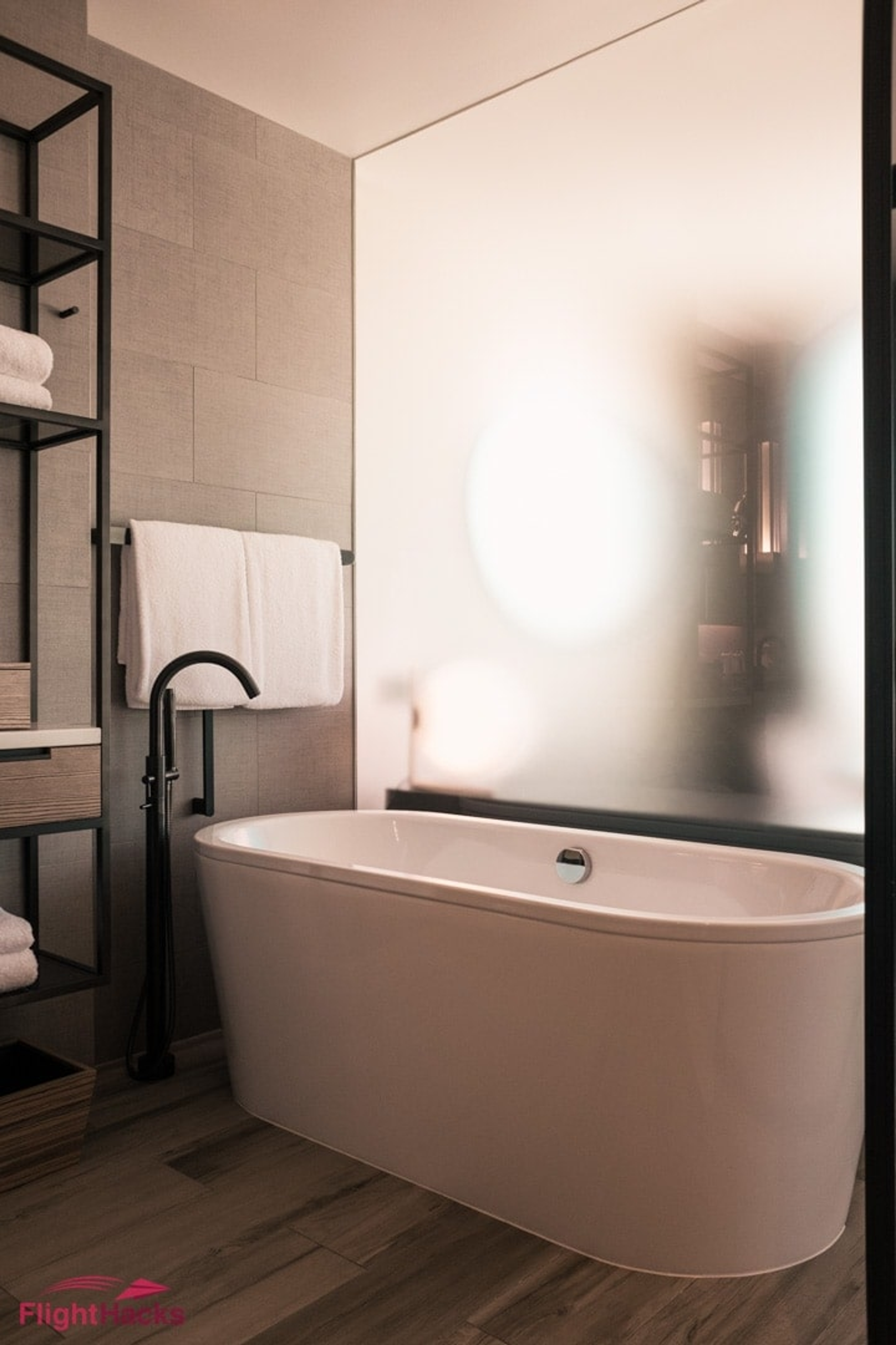 Before getting to the room itself, there was a small hallway with separate toilet, massive wardrobe and a spacious bathroom with a separate shower and bath.