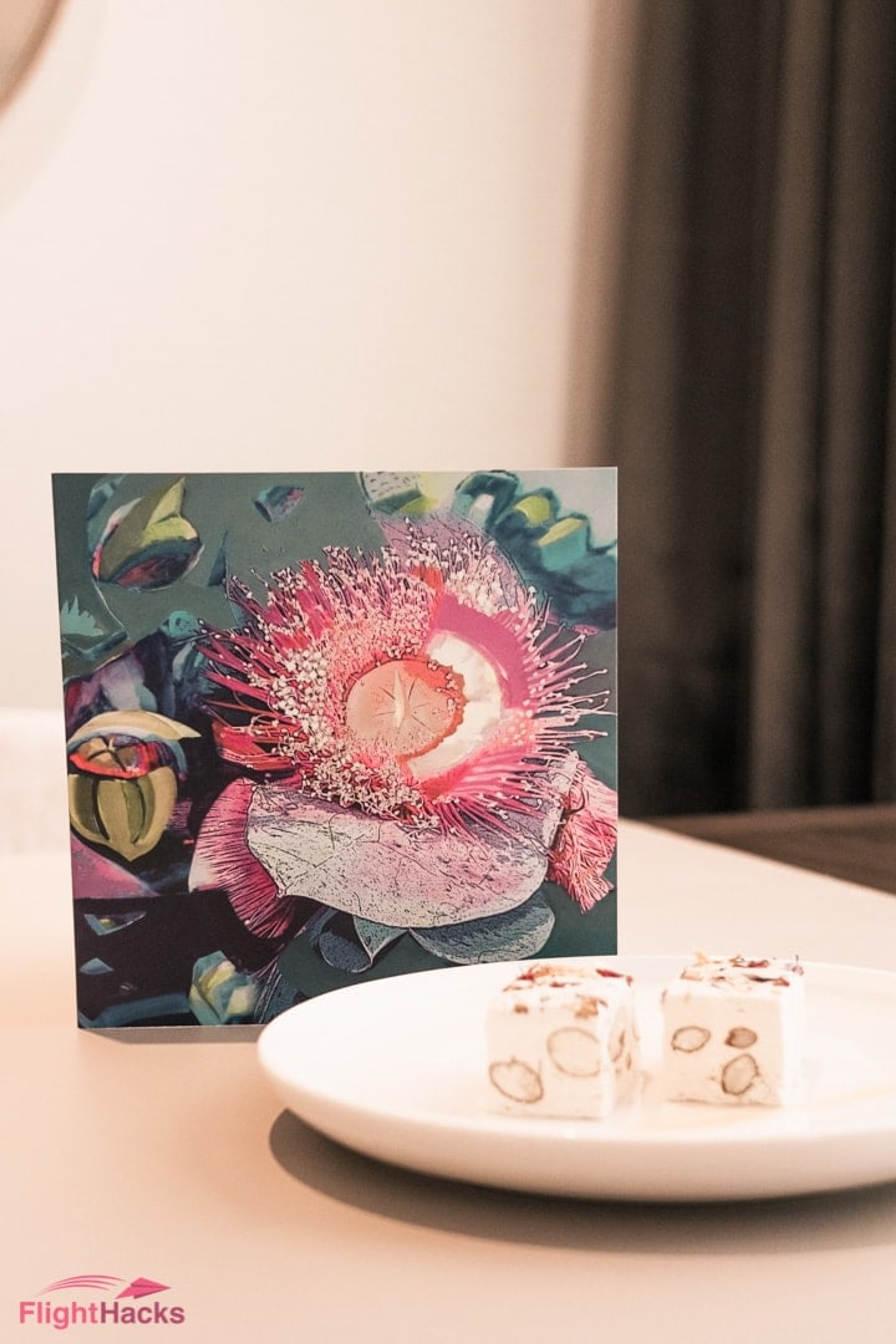 The interior design at IC Perth is stunning, and every design detail seemed very well thought out. A common theme throughout the room was the marble, gold and black mixed in with interesting textures and local artworks. The mini fridge was fully stocked with everything from champagne to beer with a Nespresso machine ready to go. The cabinet that stored the mini fridge had everything built in and opened up like a pantry with snacks and a somewhat extension of glassware.