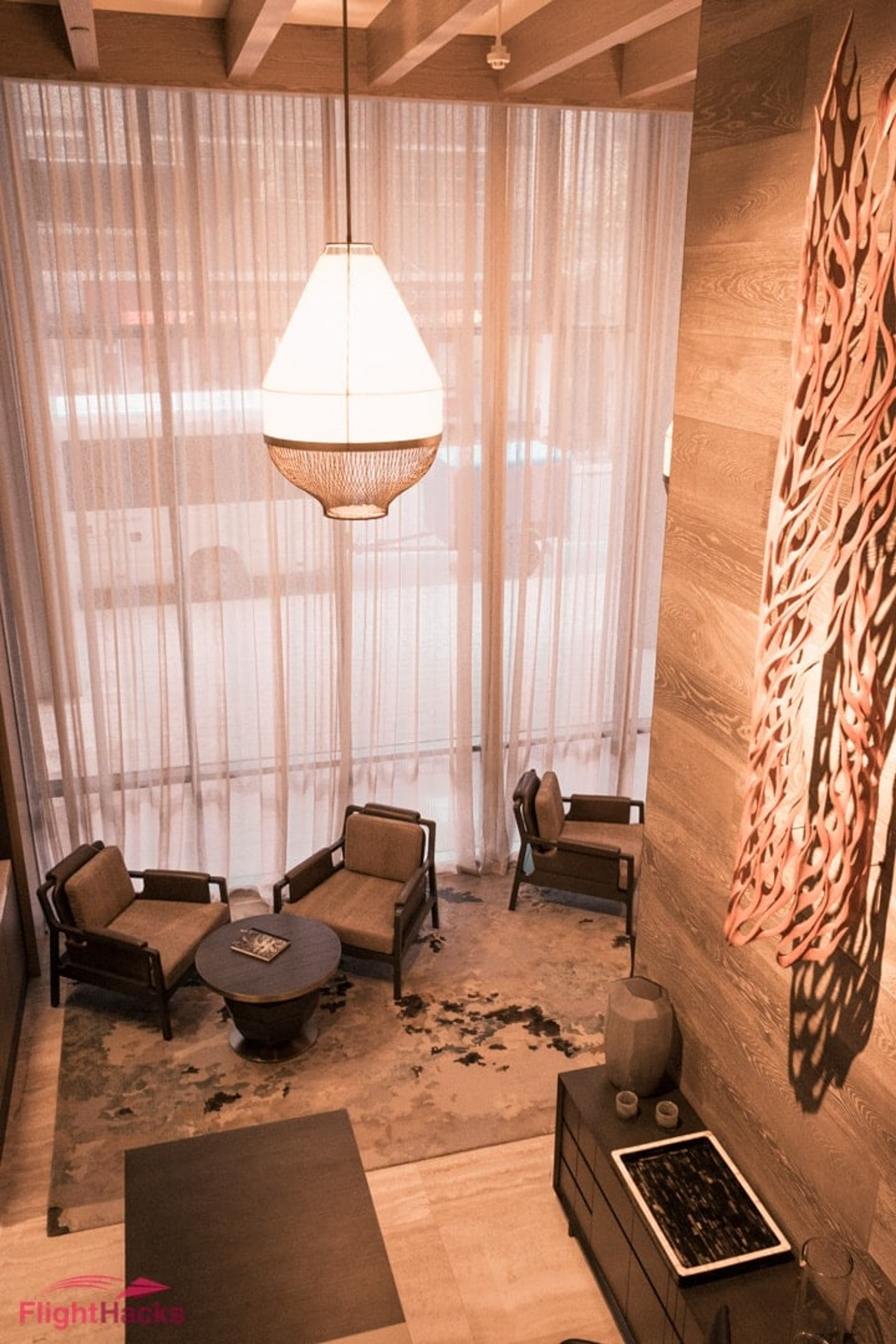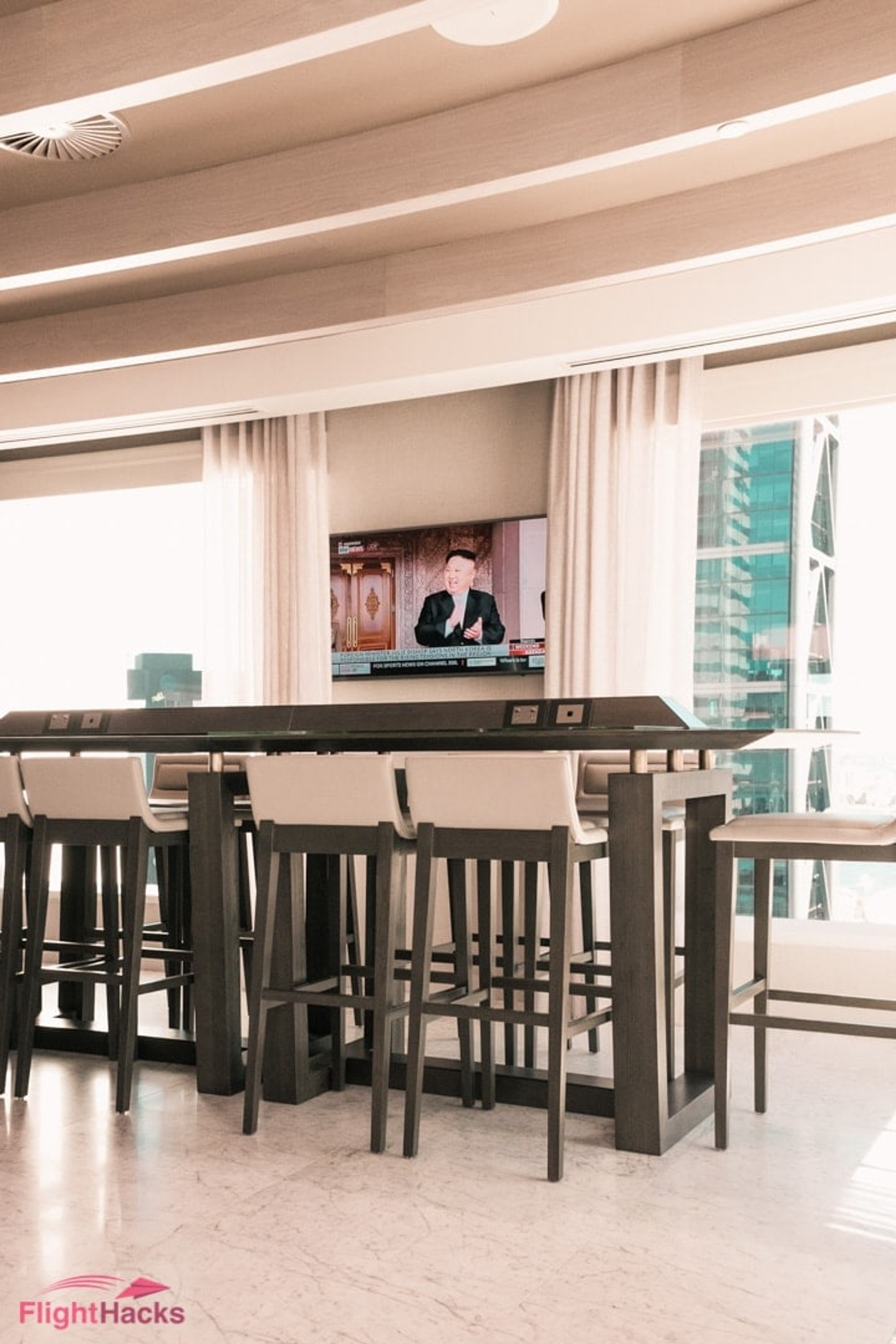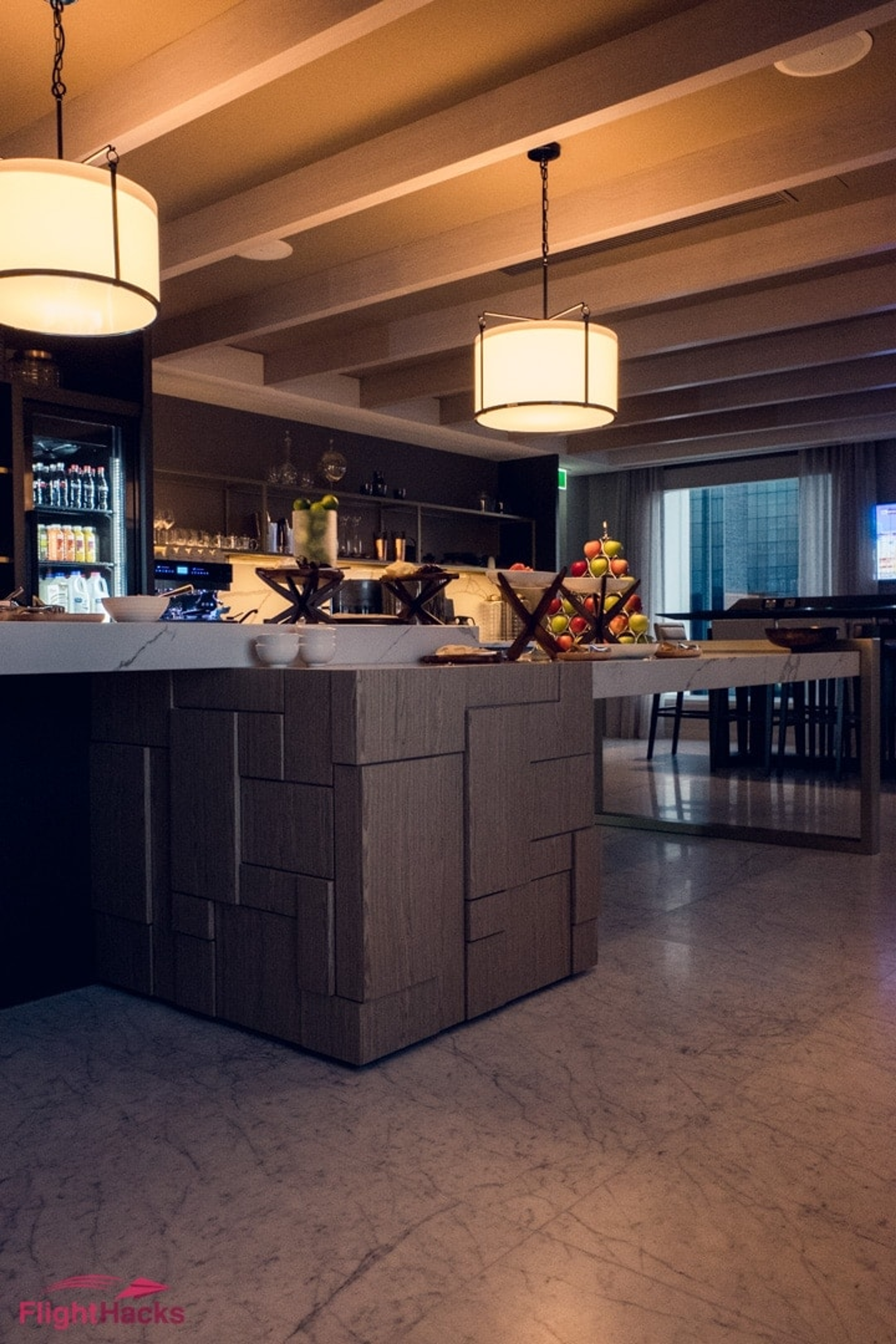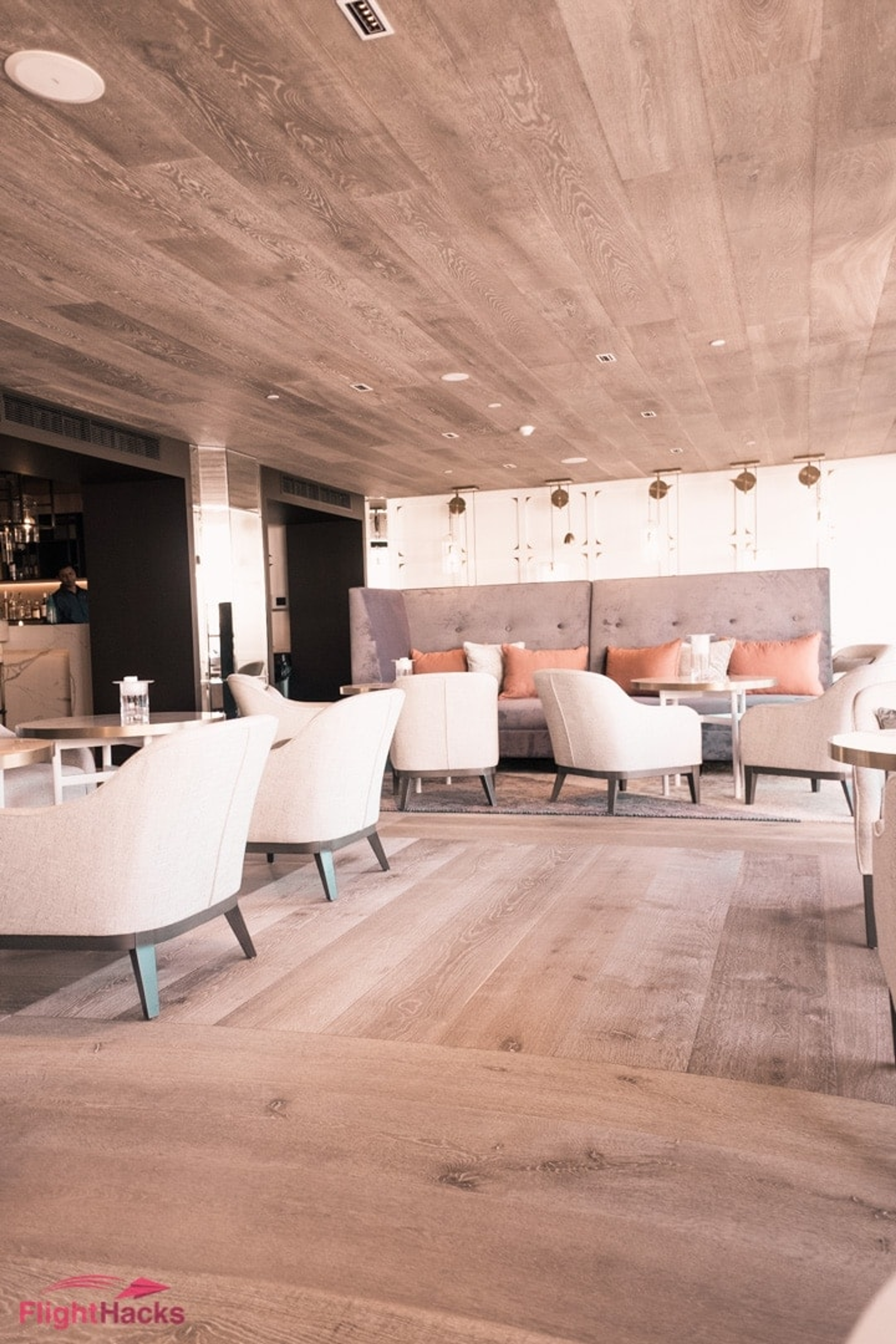 This is one of those club lounges where it’s worth it to pay extra for access. It’s beautiful, large open-plan space with great views over the city.