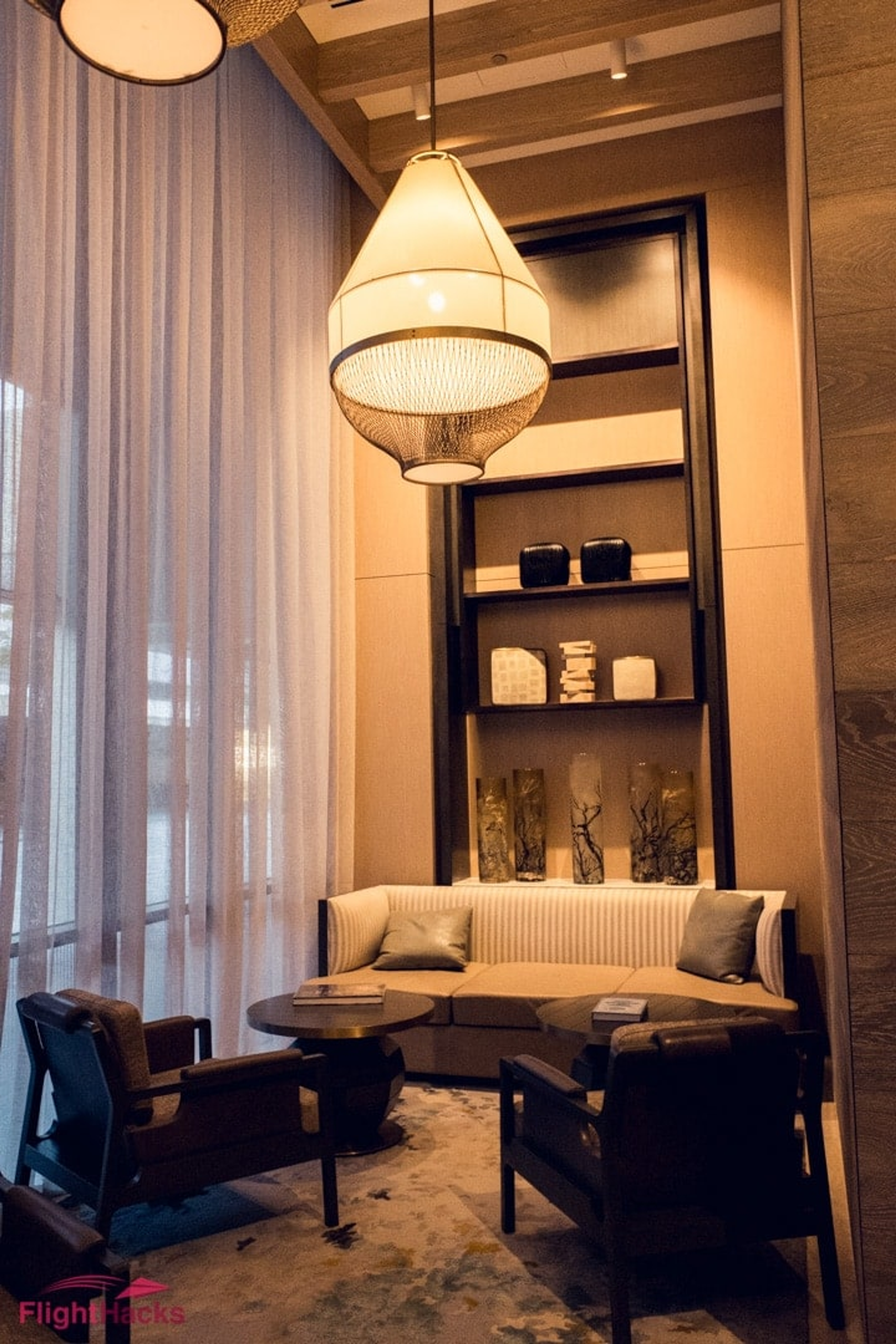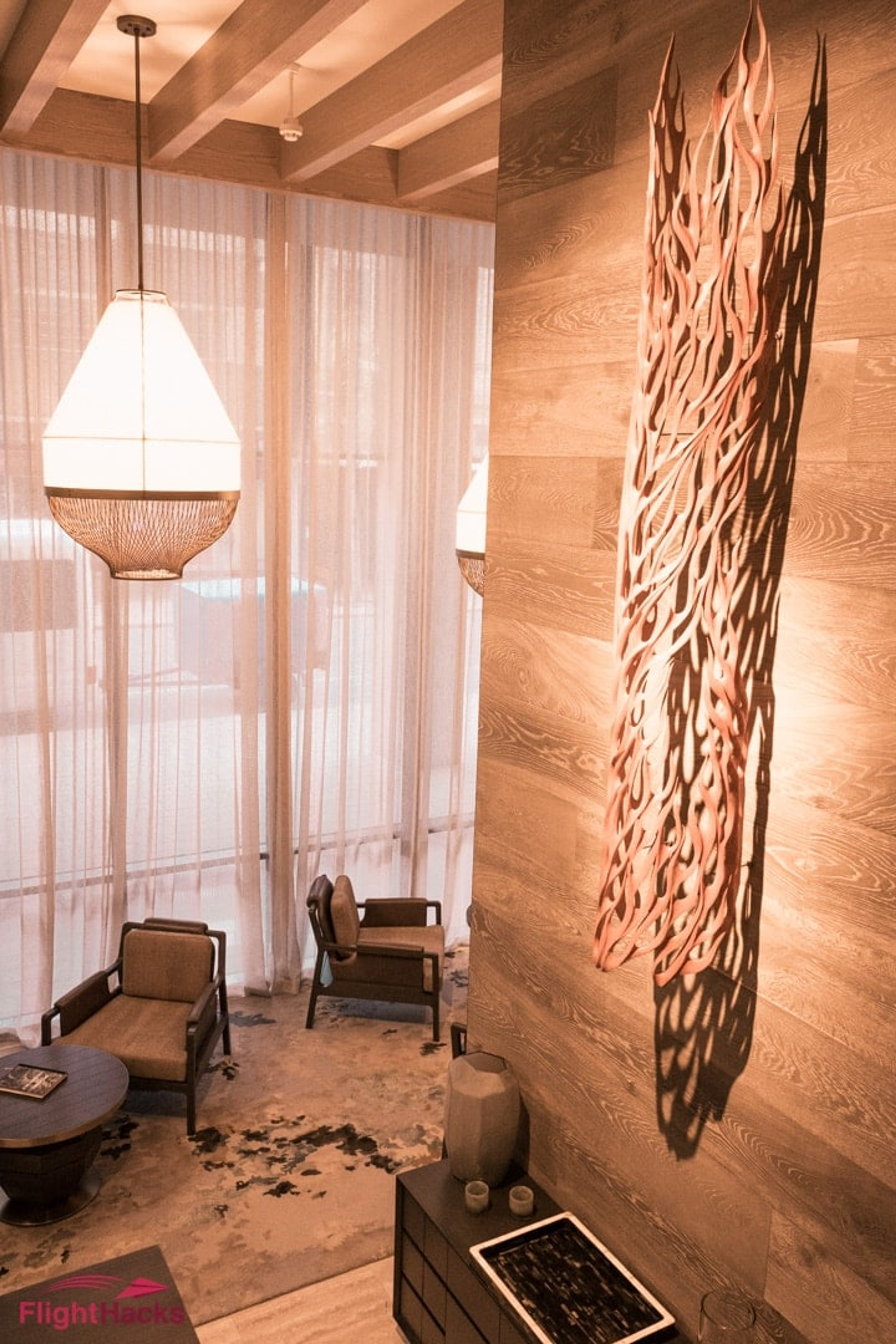 The artwork hanging from the ceiling at the entrance is striking and compliments the whole interior style which is nothing but on point.