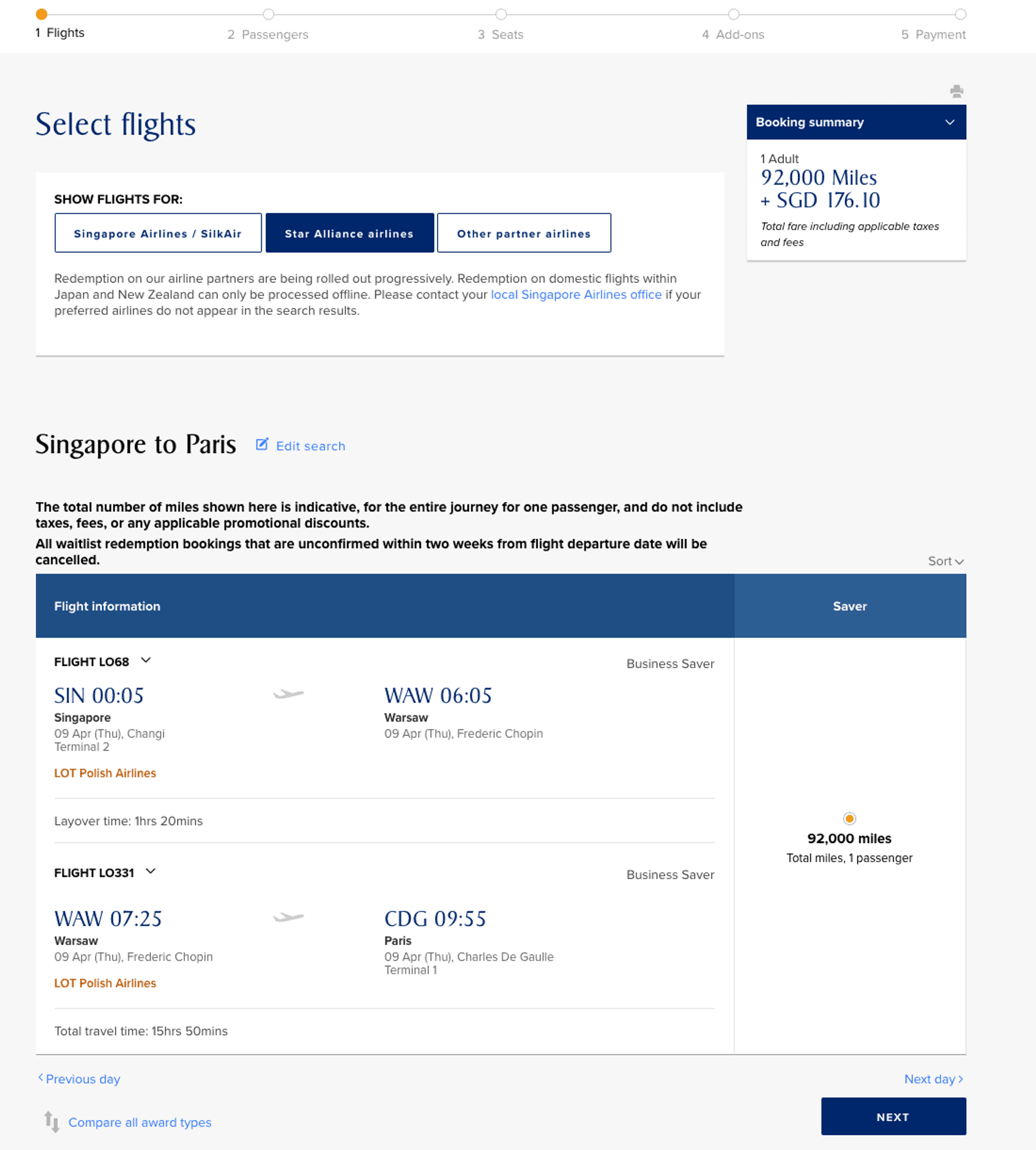 Please note the following when booking Star Alliance award flights with KrisFlyer: