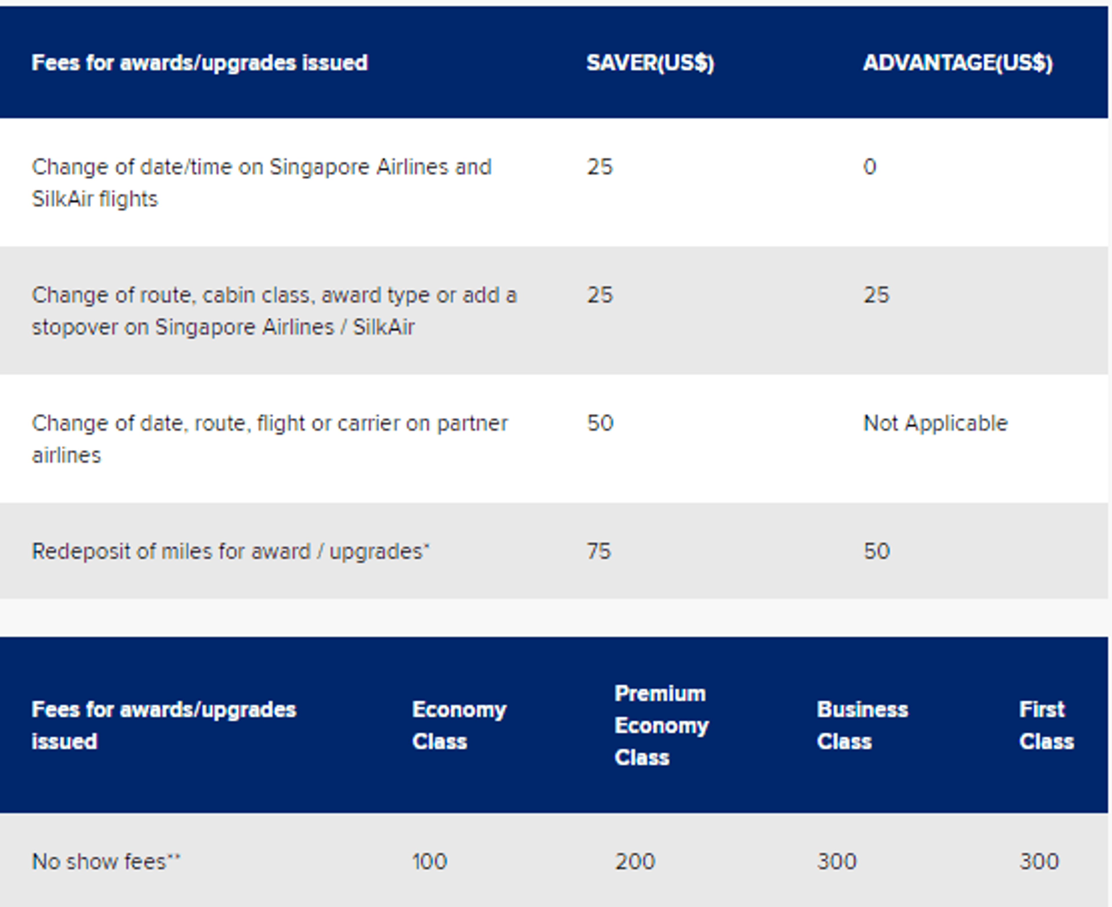 - Singapore Airlines and Silk Air upgrade award chart