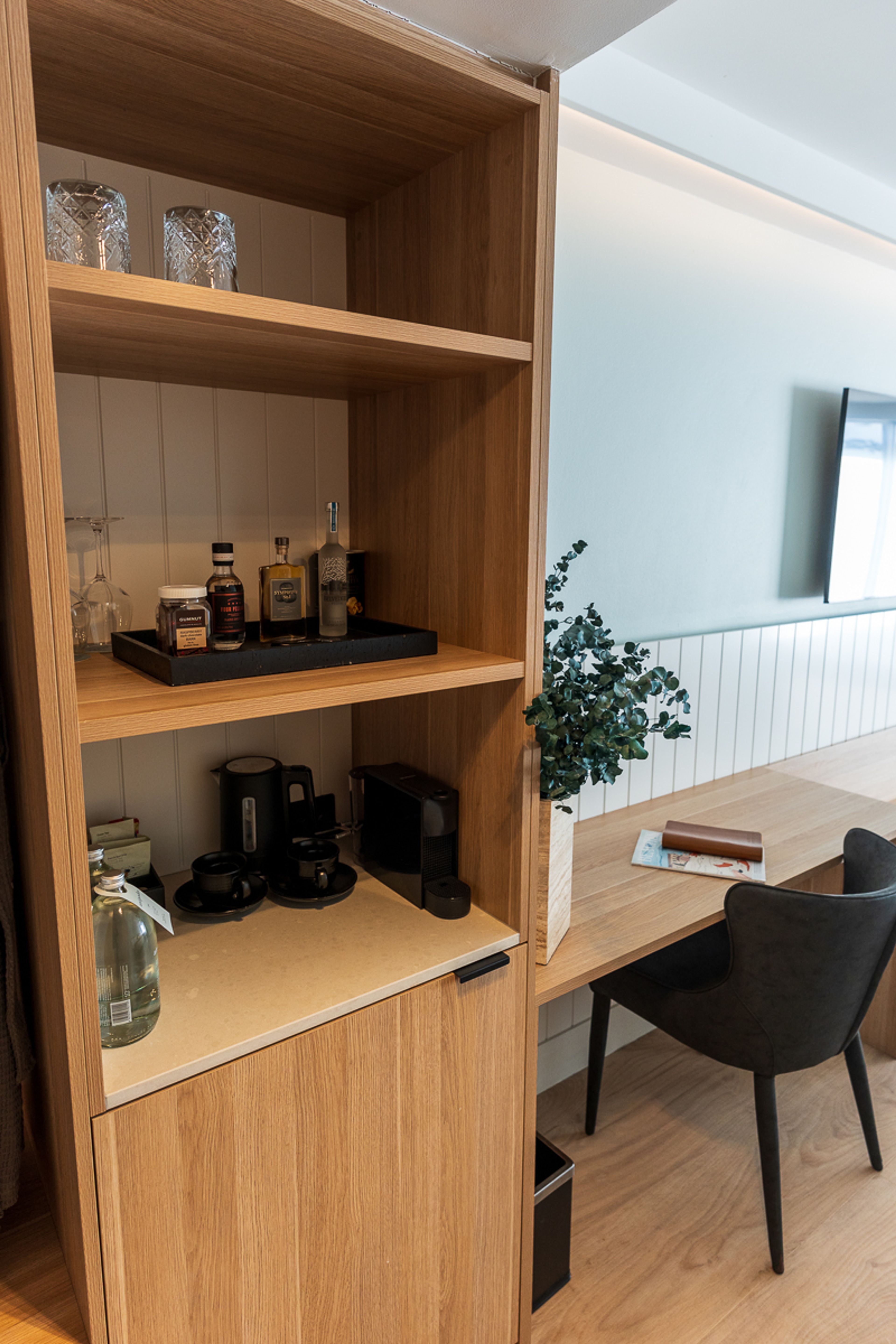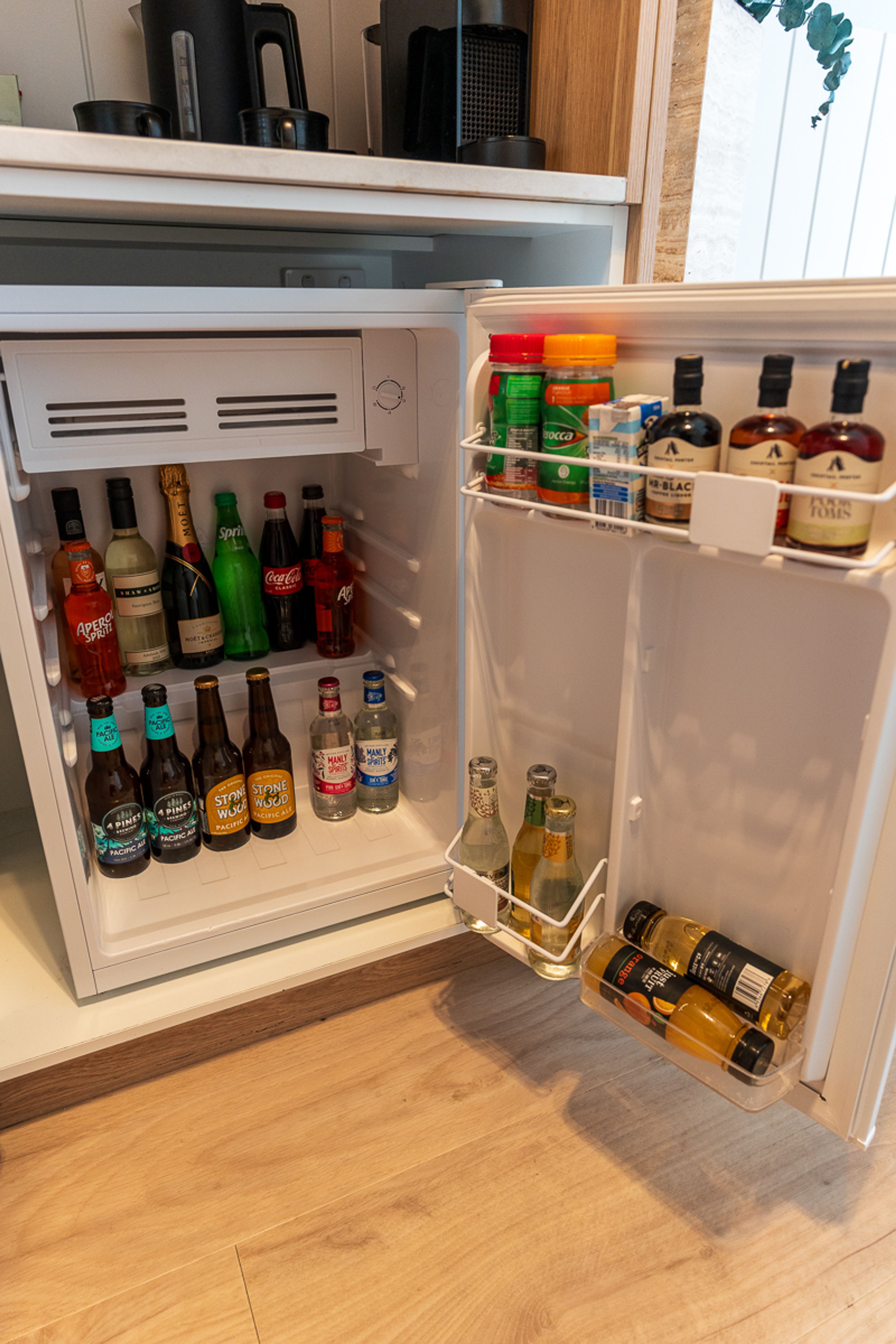 Back inside, the minibar is a treasure chest for grown-ups, with premium spirits, mixers, premixed cocktails, craft beers and wines. They’ve even included ready-made vitamin drinks for those who need a little help after a night of indulging.