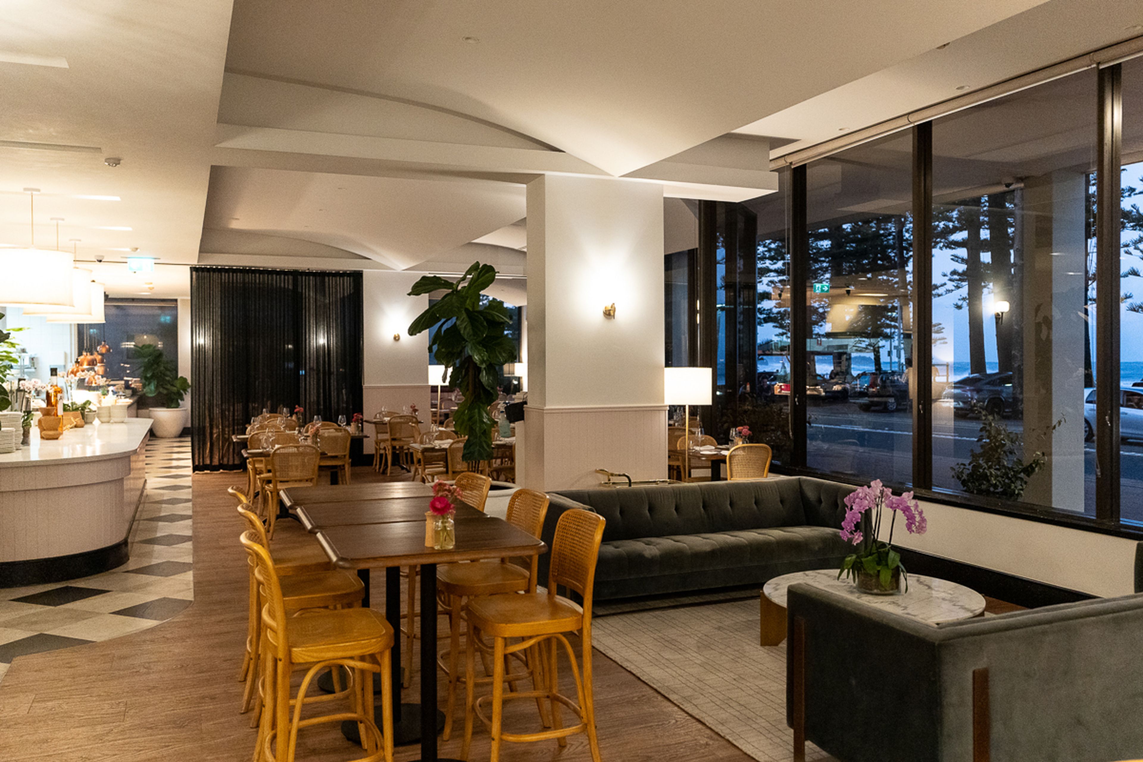 55 North is Manly Pacific’s cocktail lounge, a lively and eclectic spot perfect for drinks and nibbles. The menu is impressively varied, with both classic cocktails and local Northern Beaches specialties. Here, you can settle into one of the cozy booths and soak up the sunset, or if you're feeling fancy, have drinks delivered right to the pool via a QR code.