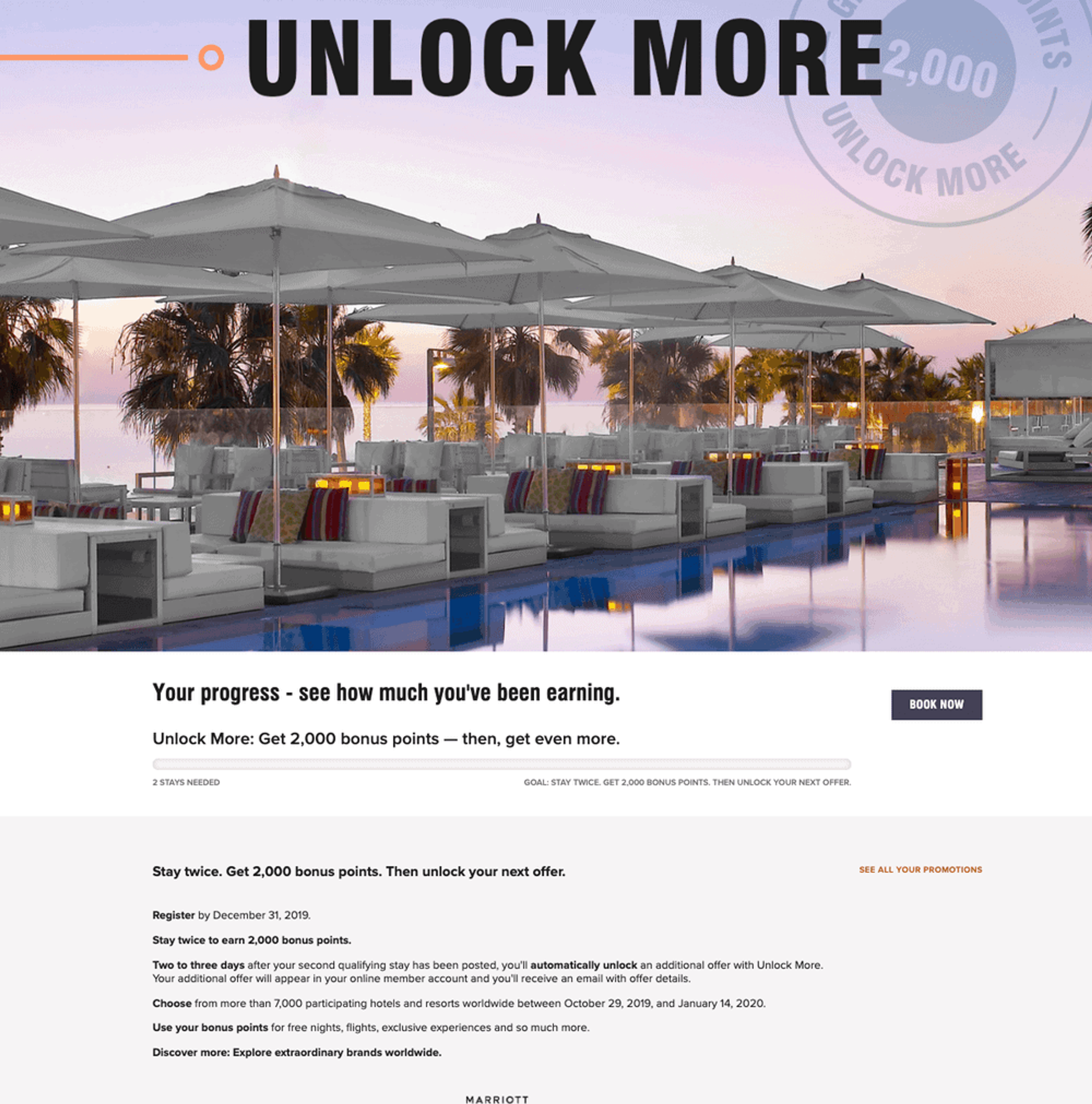 Marriott also hints to an additional offer in their promotional material. This new offer will be unlocked after you complete the two stays. The website states: Two to three days after your second qualifying stay has been posted, you’ll automatically unlock an additional offer with Unlock More. Your additional offer will appear in your online member account, and you’ll receive an email with offer details.
