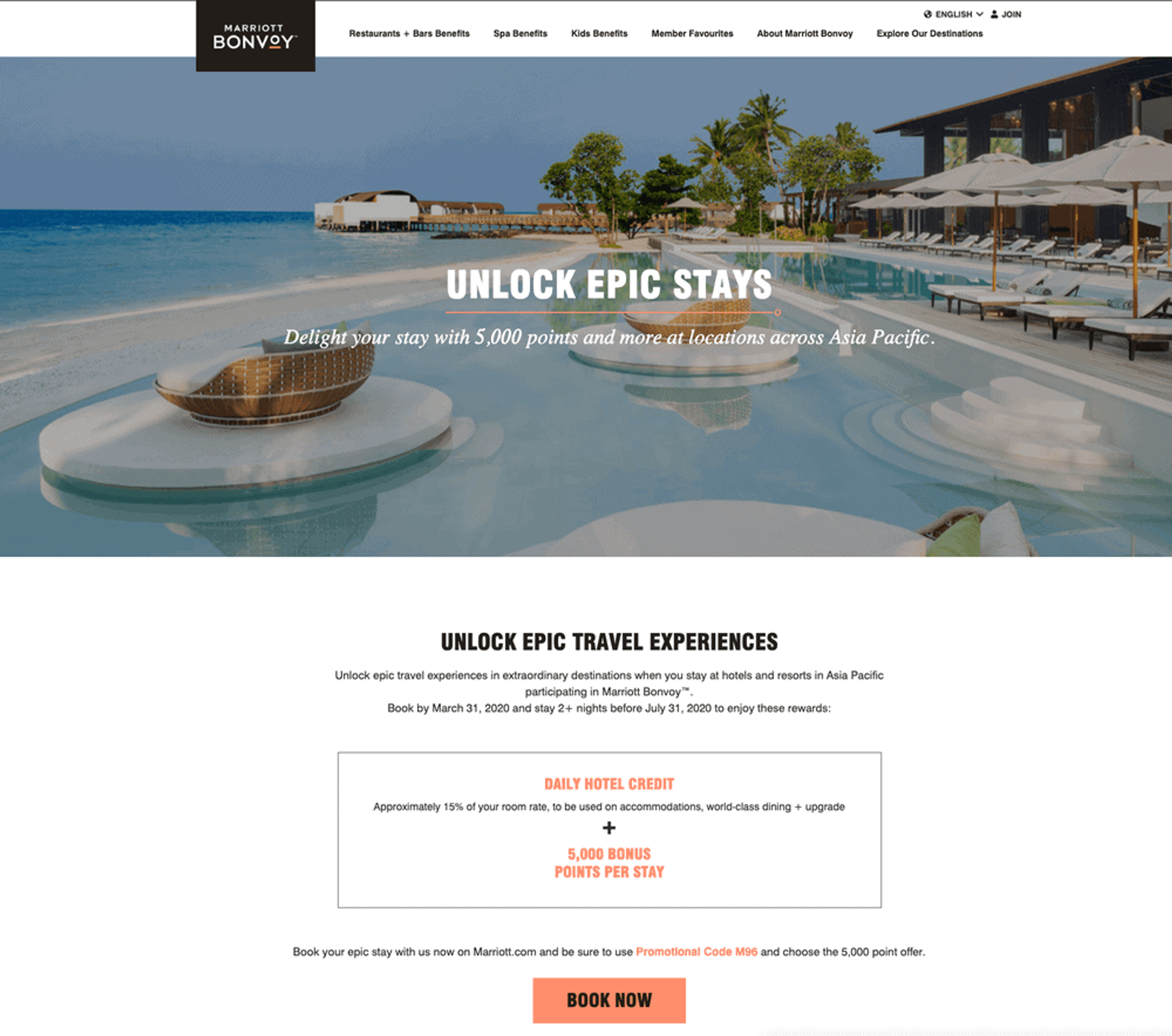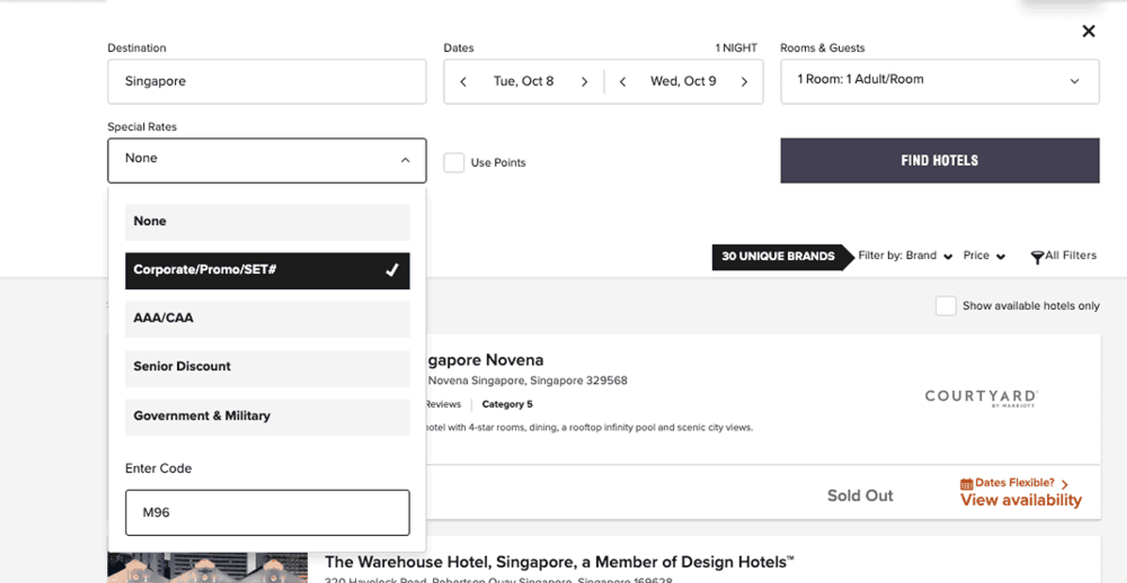 To get this offer, click here and enter promo code ‘M96’ when searching for hotels. You will then need to go to the “Deals & Packages” tab to select the eligible rates.