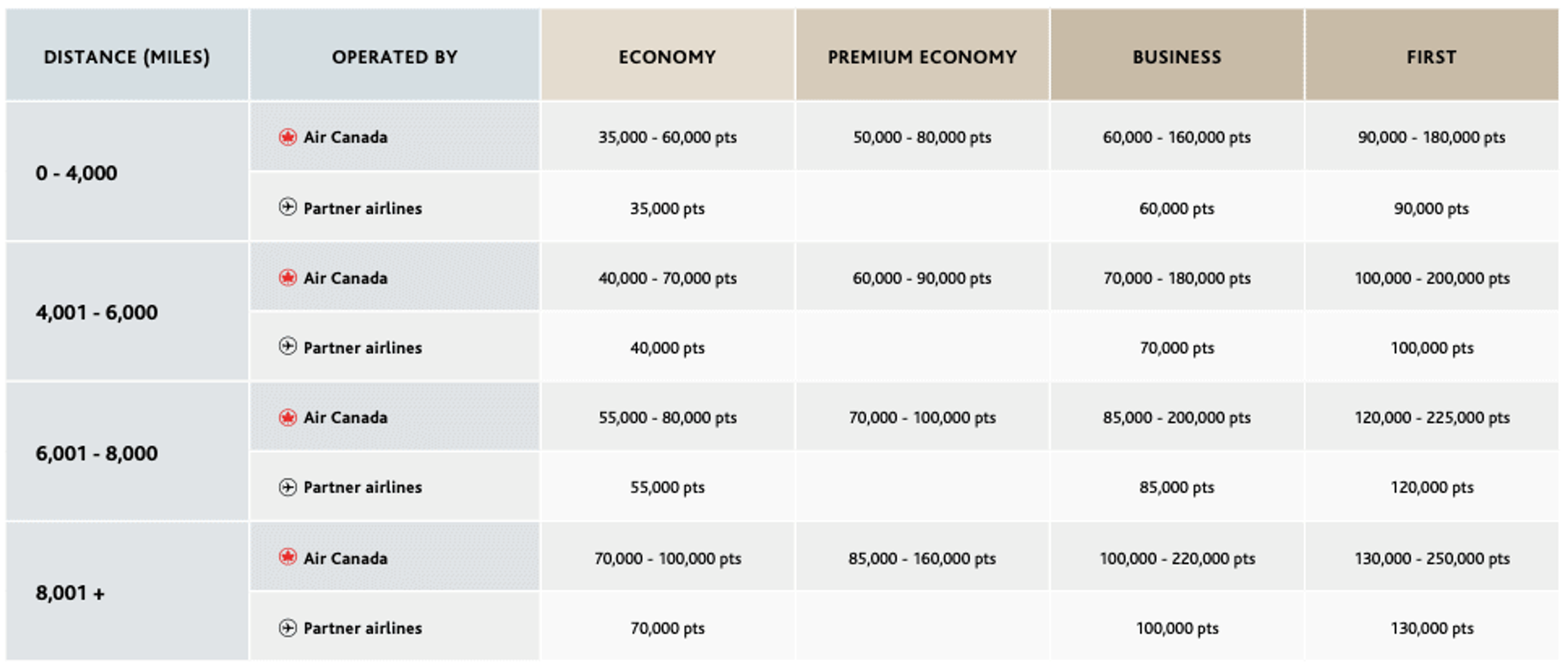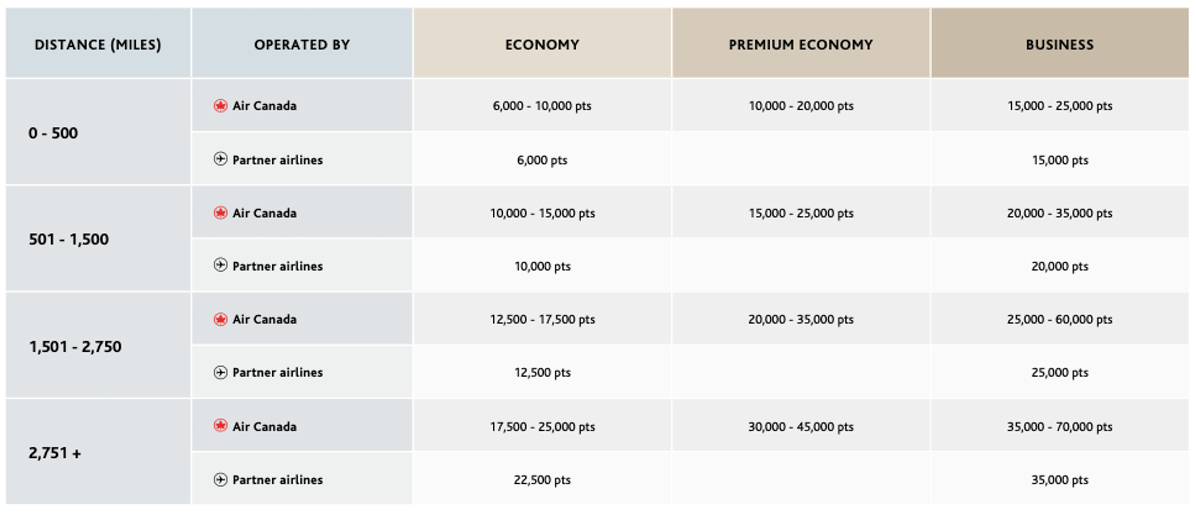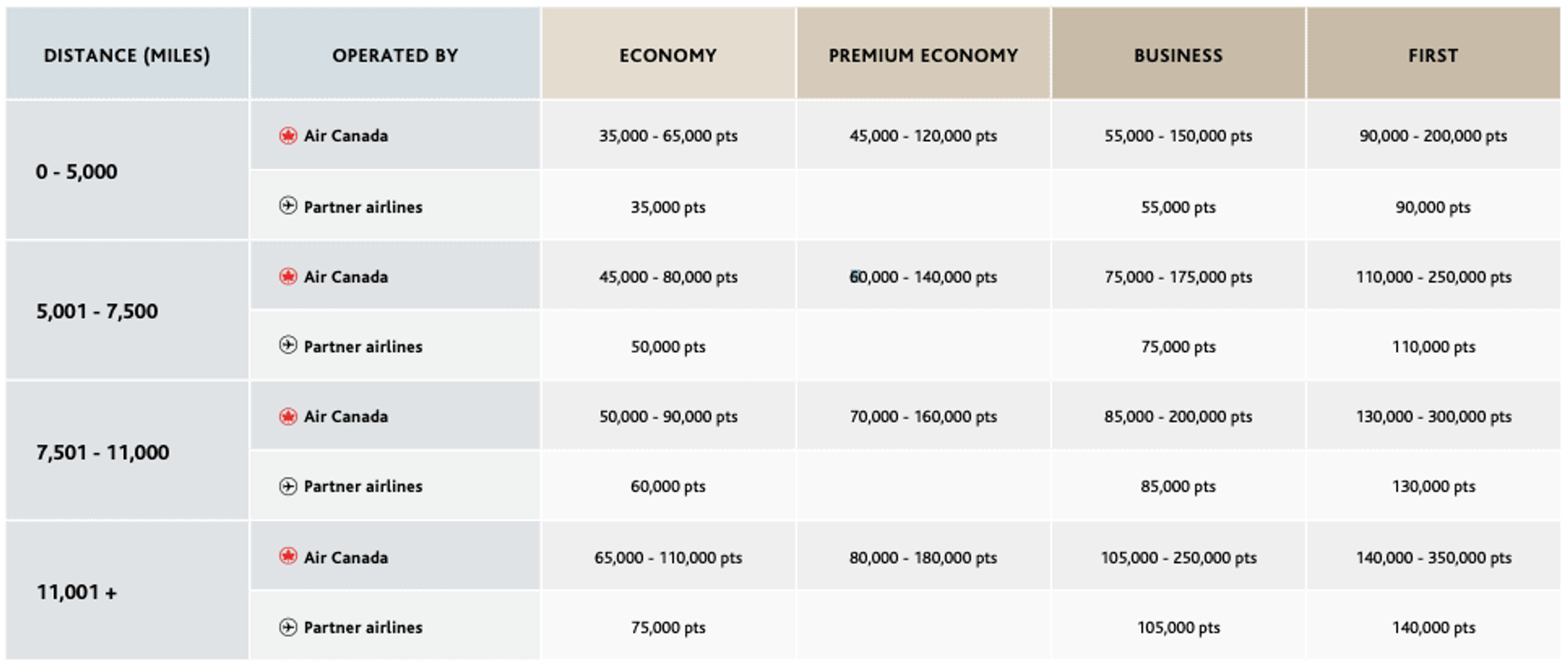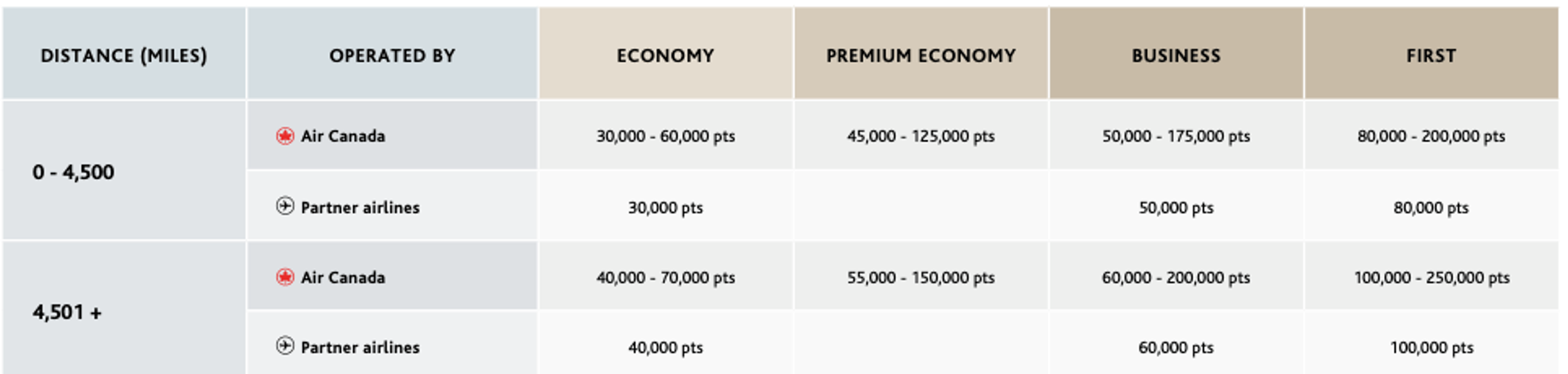 - The new award chart will be a hybrid model between zone and distance-based charts. Thankfully partner airlines will all be classed under fixed pricing whereas Air Canada operated flights will be priced dynamically based on demand.
