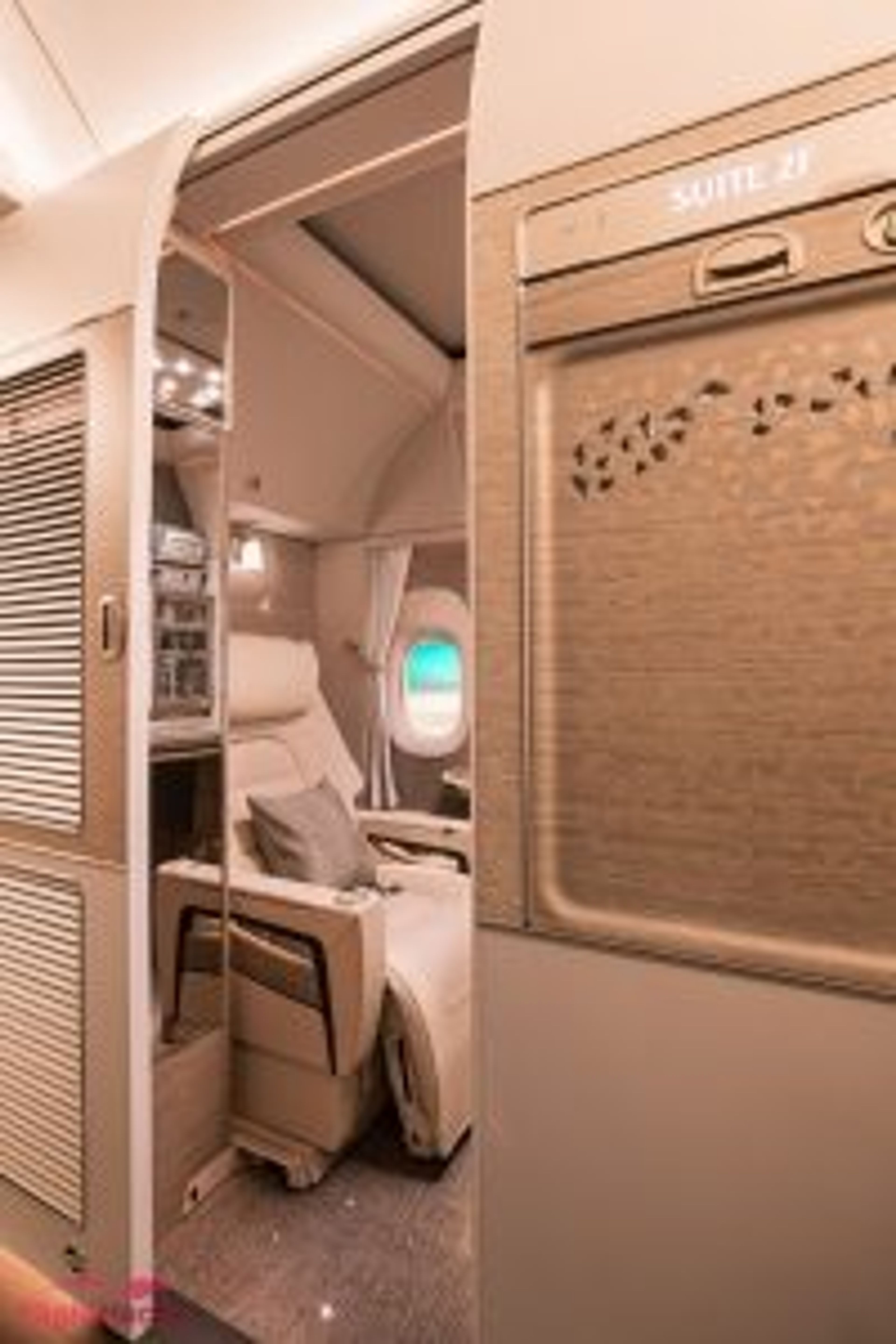 The new first class suites are designed in collaboration with Mercedes-Benz and are the world’s first fully enclosed first-class cabins featuring floor to ceiling doors.