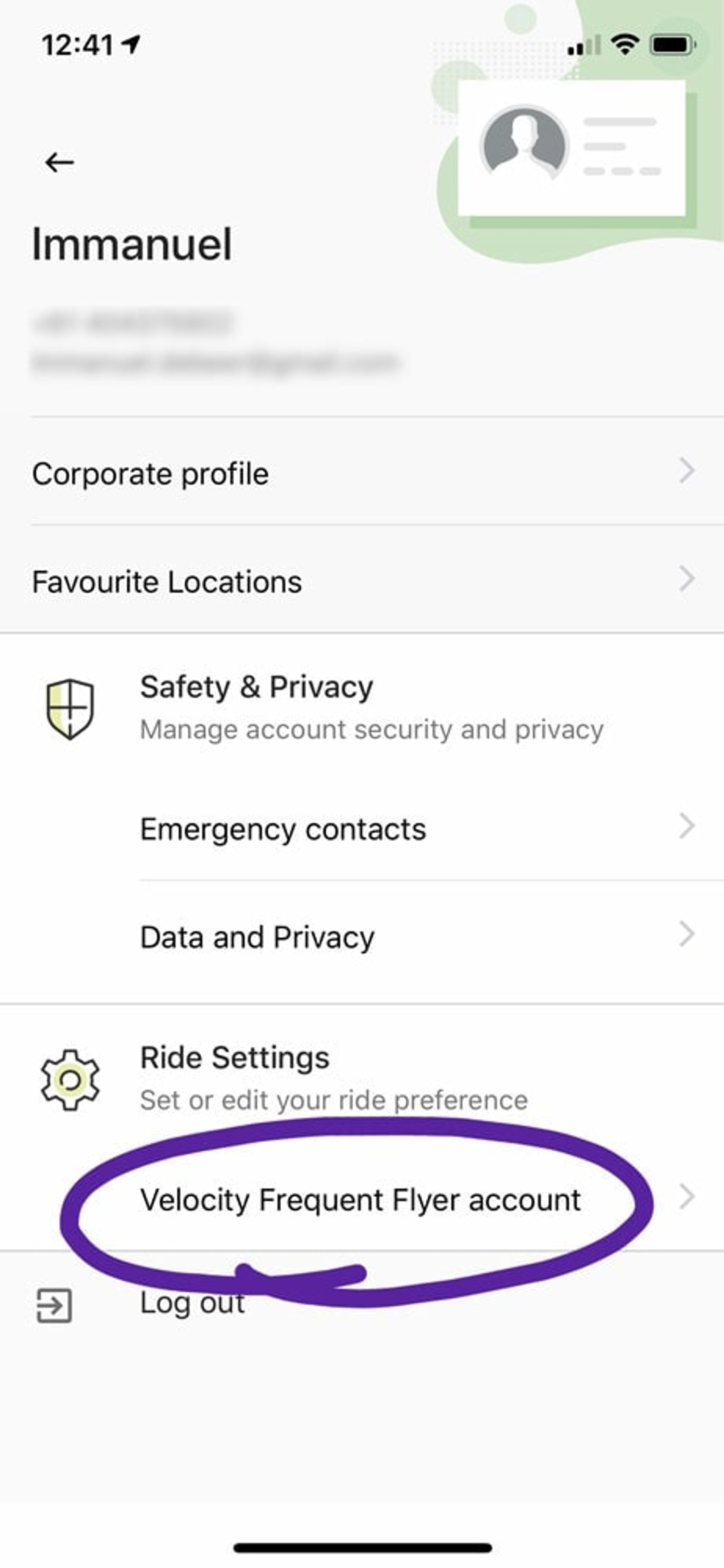 To link your account, simply download the app, click on the menu and click on your name. At the bottom of the app, you will see a menu item which reads “Velocity Frequent Flyer account”. Click this and enter your Velocity number. It’s important to make sure that your Ola account details (name and last name) match that of your Virgin account.