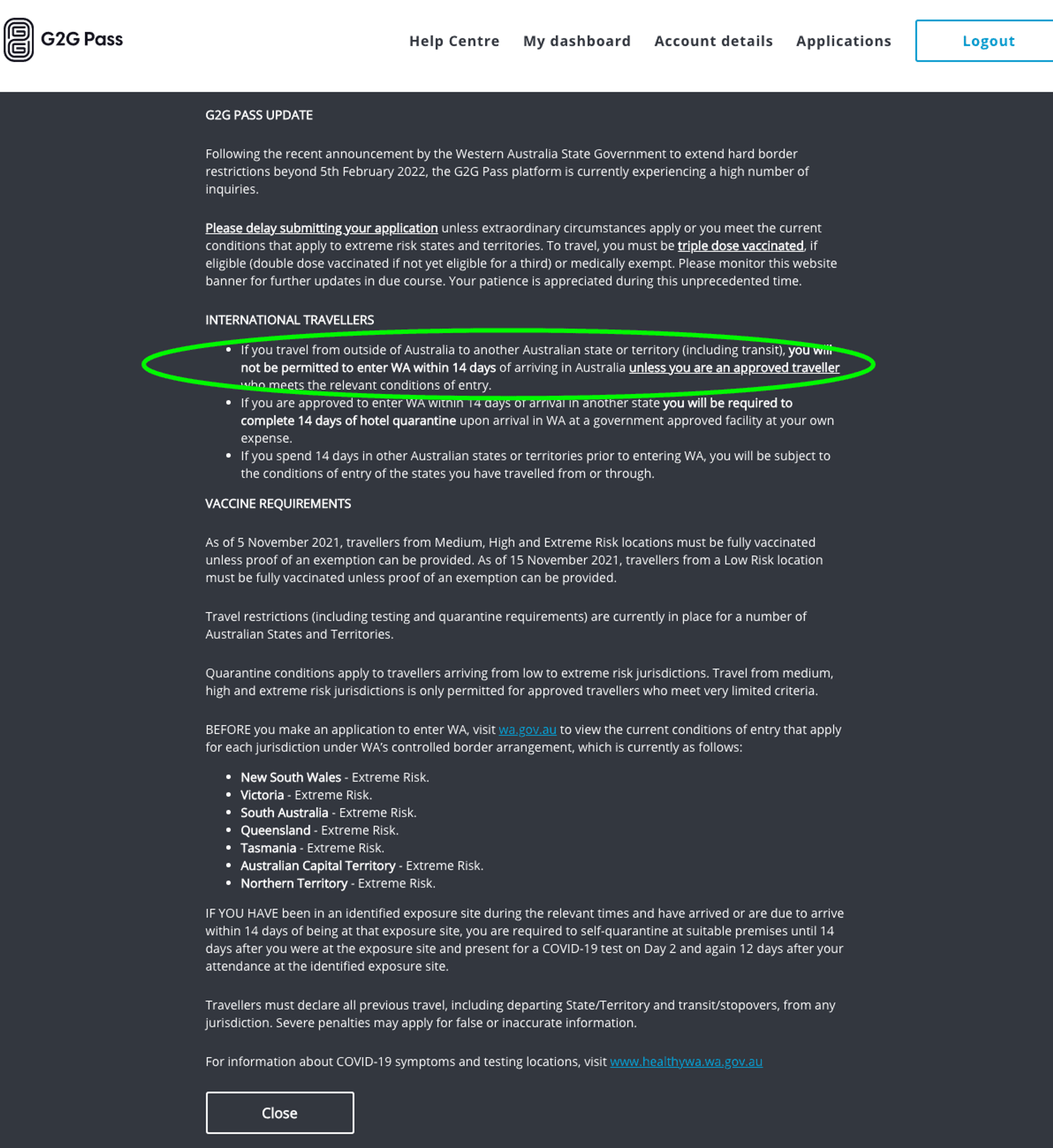 Update: the G2G website is highly confusing and appears to be giving contradicting information that seems to be a mix of current rules and new upcoming rules. We’re seeking clarification from the WA government, in the meantime make sure you screenshot this link in case you’re going to rely on it.