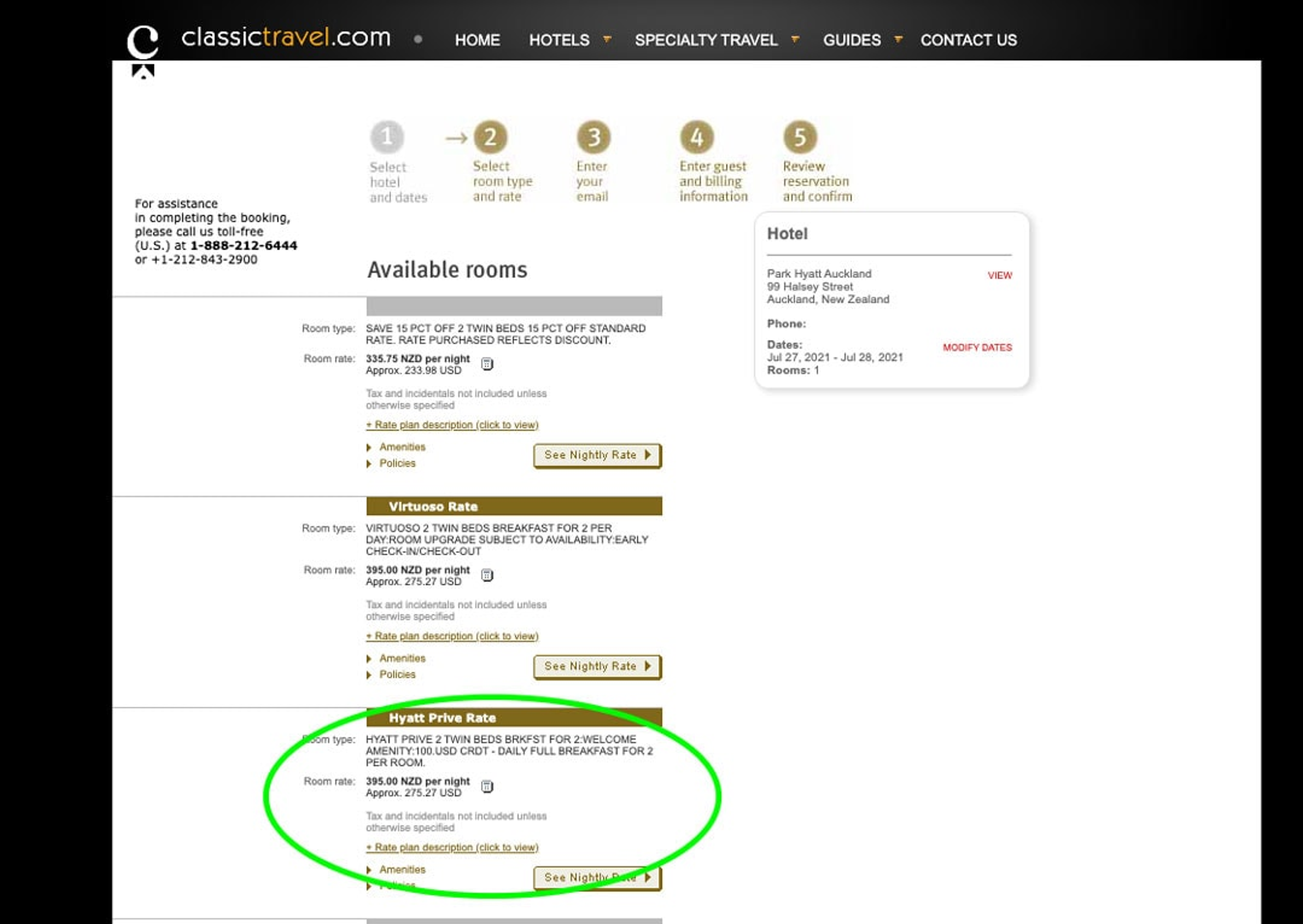 - Search for “Park Hyatt Auckland”