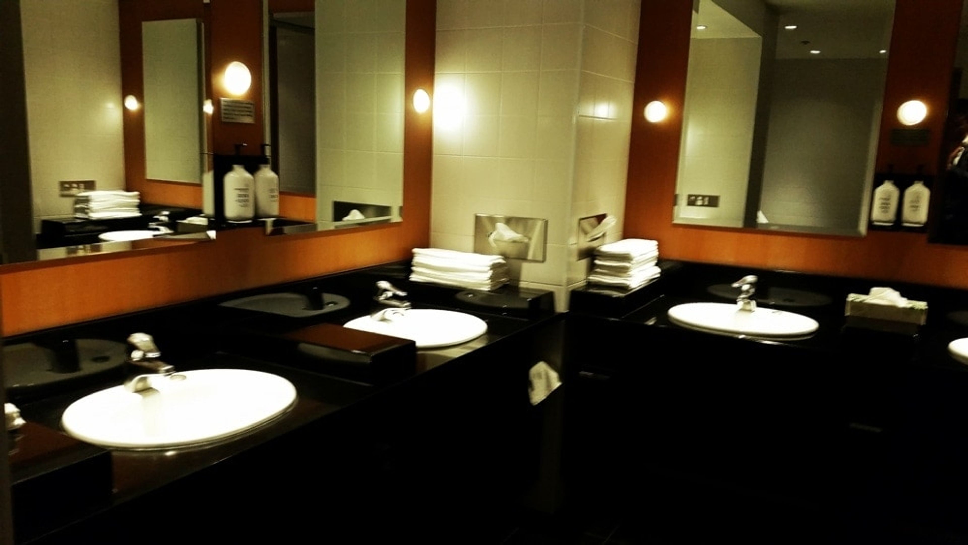 On to the bathrooms, nothing crazy there. All are clean and tidy with black and wooden veneer finish (standard Qantas) with Aurora Spa Rituals hand wash and hand moisturiser. The Qantas lounge bathrooms at AKL are also stocked with real linen towels and showers are also available with bath towels provided to guests and available from reception.