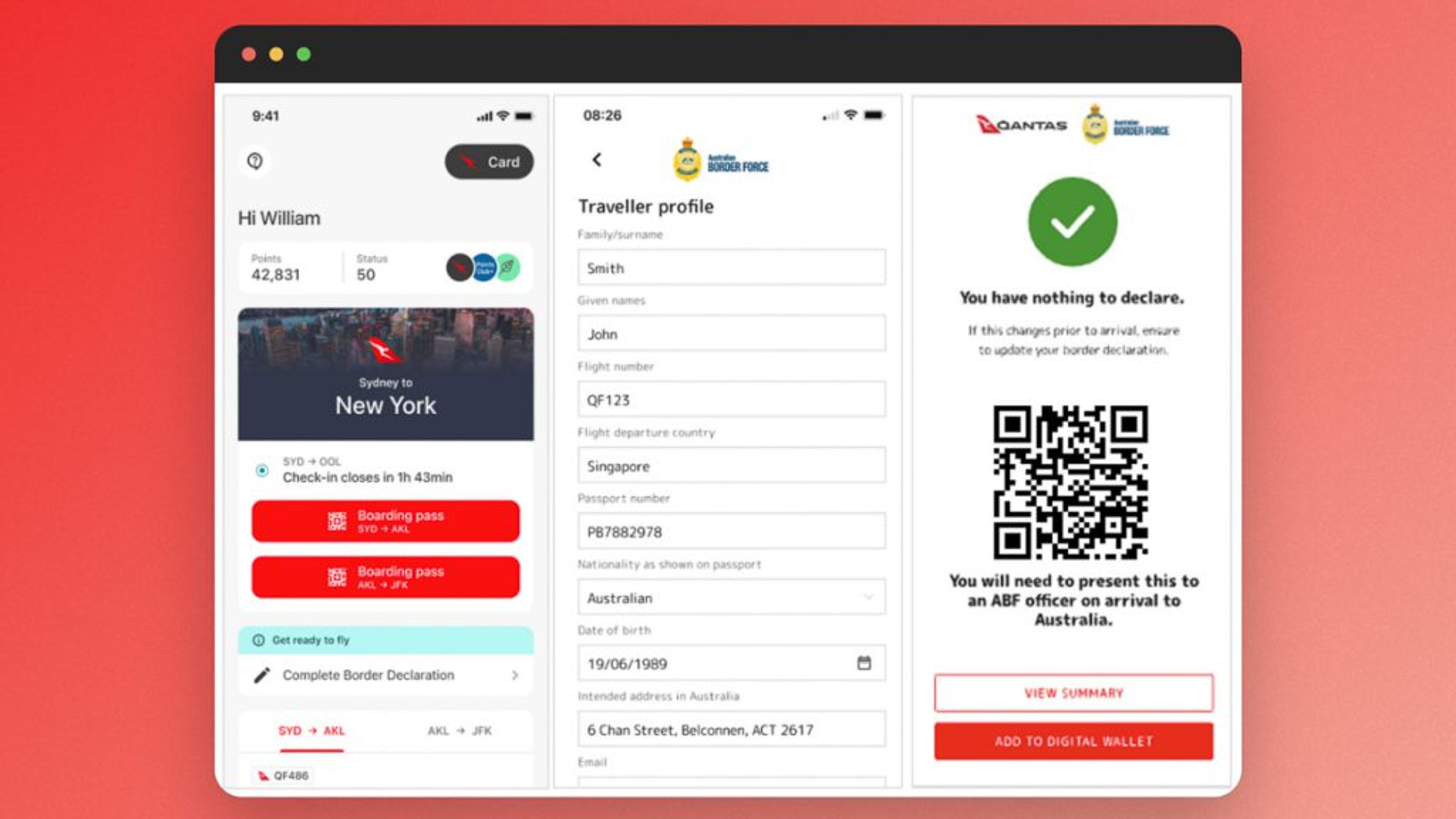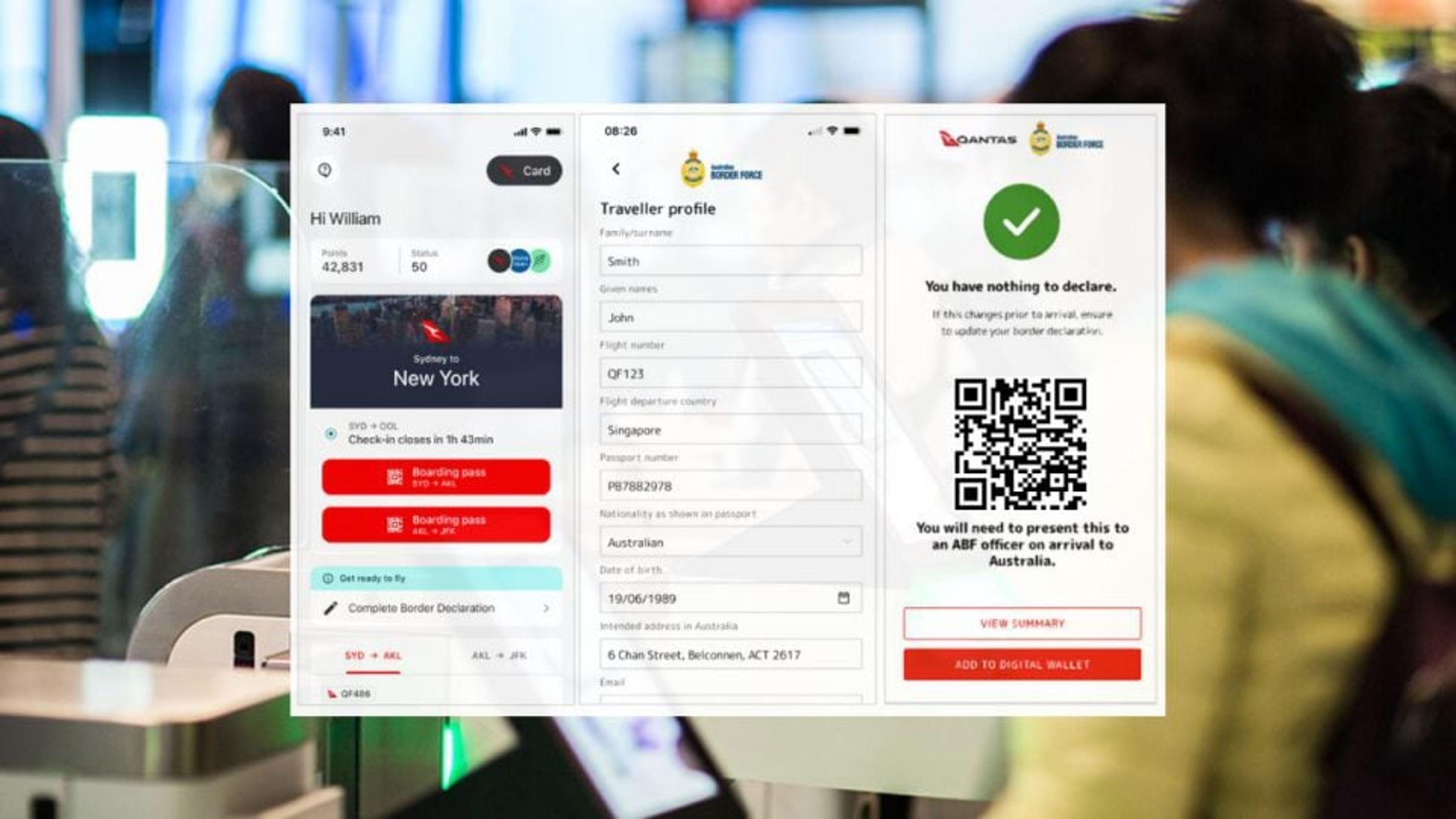 Once completed, passengers will receive a digital entry pass in the Qantas App and to their email address. The pass will include a QR code that can be shown to ABF officers upon arrival, as well as a summary if you have something to declare.