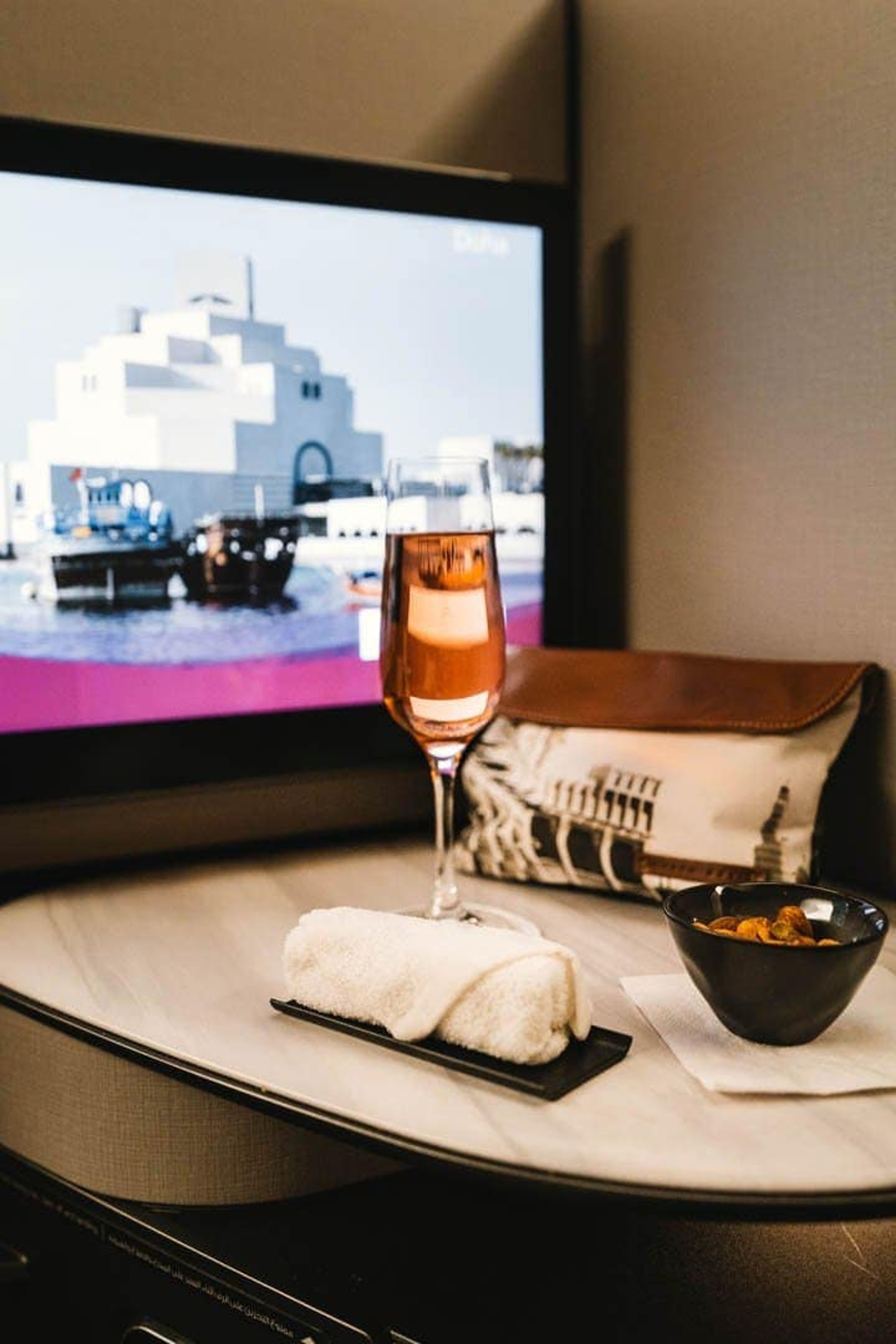 I had one glass of champagne while boarding the Jakarta to Doha flight before clocking out for the night as it was a red-eye flight.