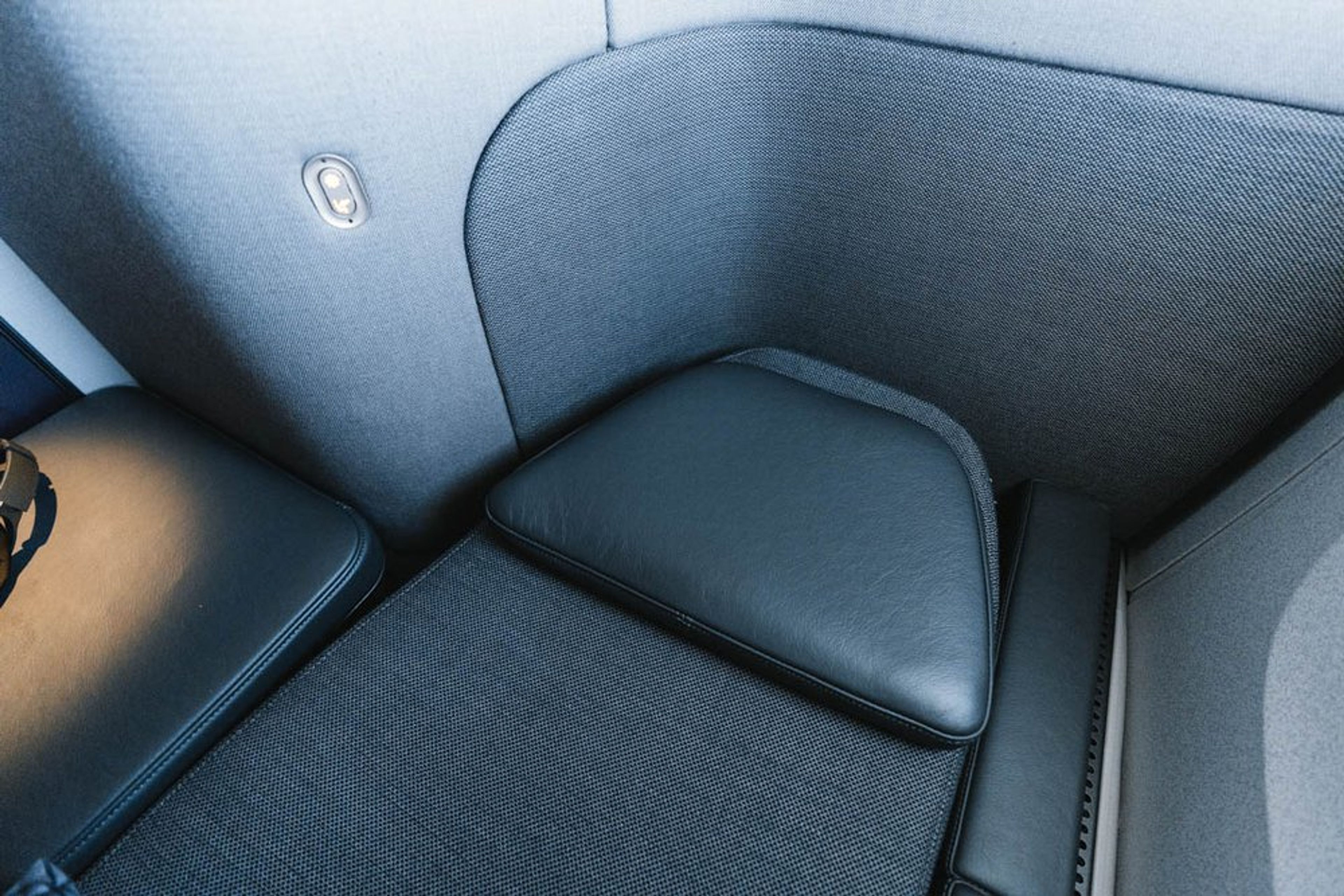 Right from the start, it’s easy to see why so many people are raving about the QSuite. The cabin is beautiful, the Spanish and slate grey which are synonymous with the Qatar Airways brand are flawlessly executed in combination with faux marble and a light beige details.
