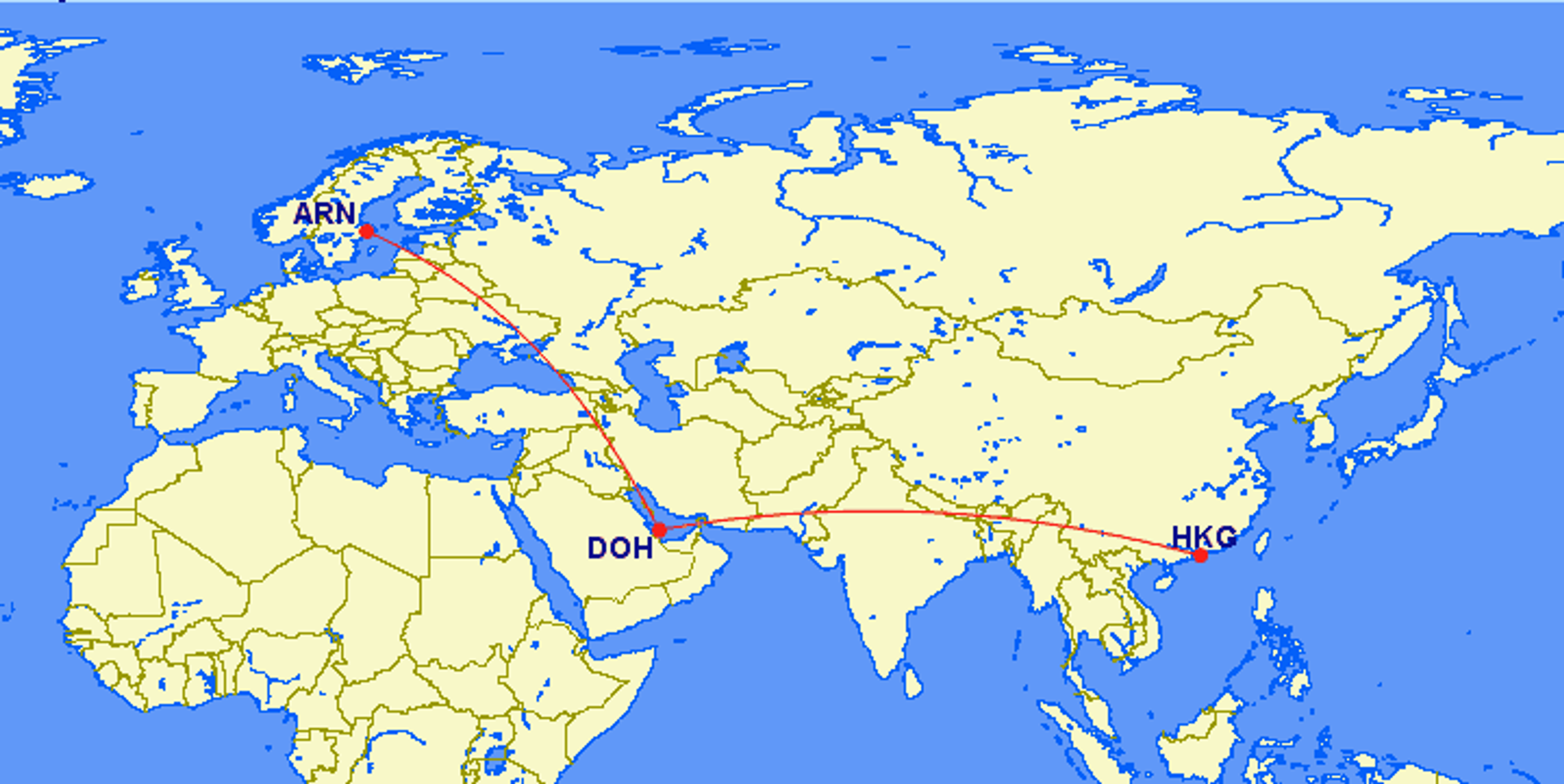 What’s the catch? You have to depart from Stockholm (ARN) Sweden and fly to Hong Kong via Doha.
