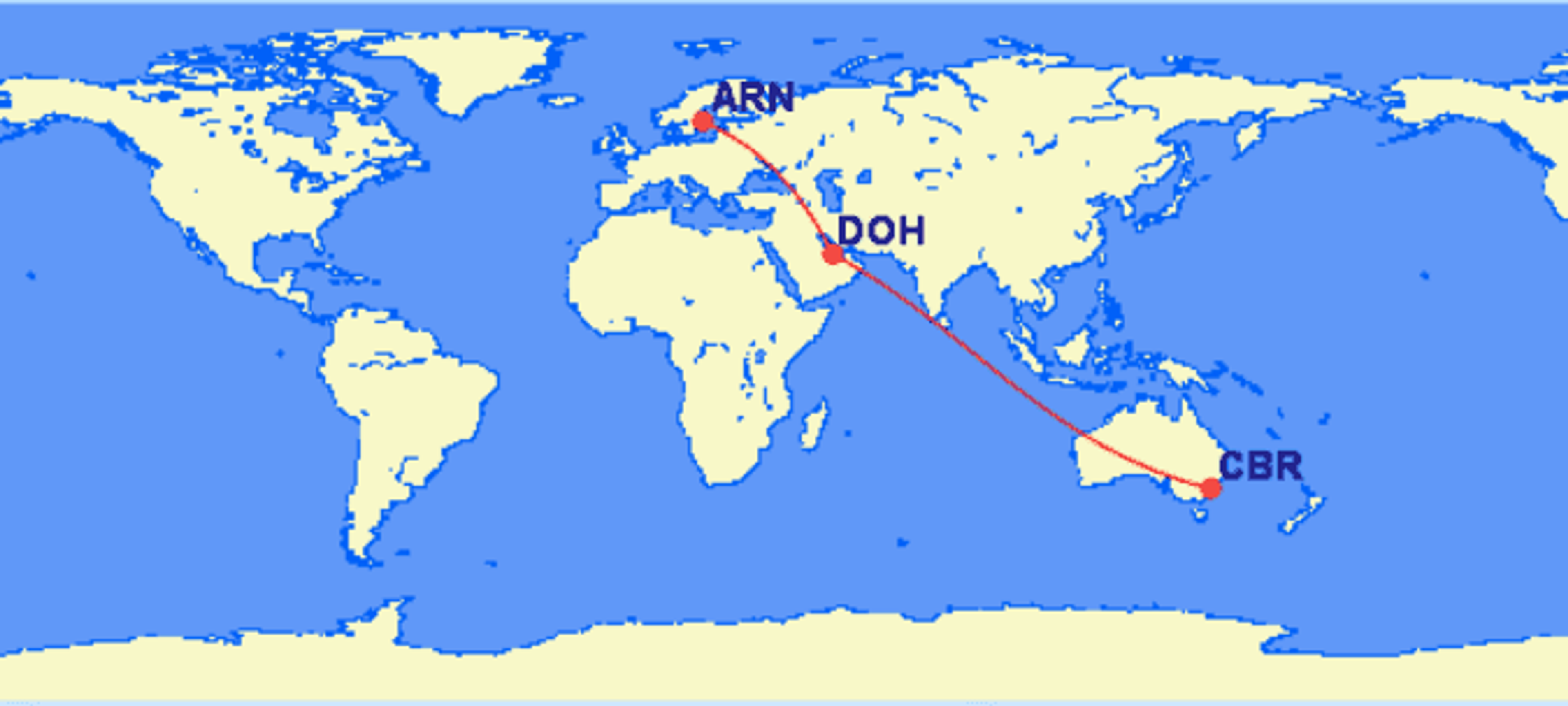 While it’s double the price, flying from Stockholm to Canberra will come in at $4131 RETURN, which really isn’ a bad price (going to Australia from Europe you’re looking at $7000 give or take).