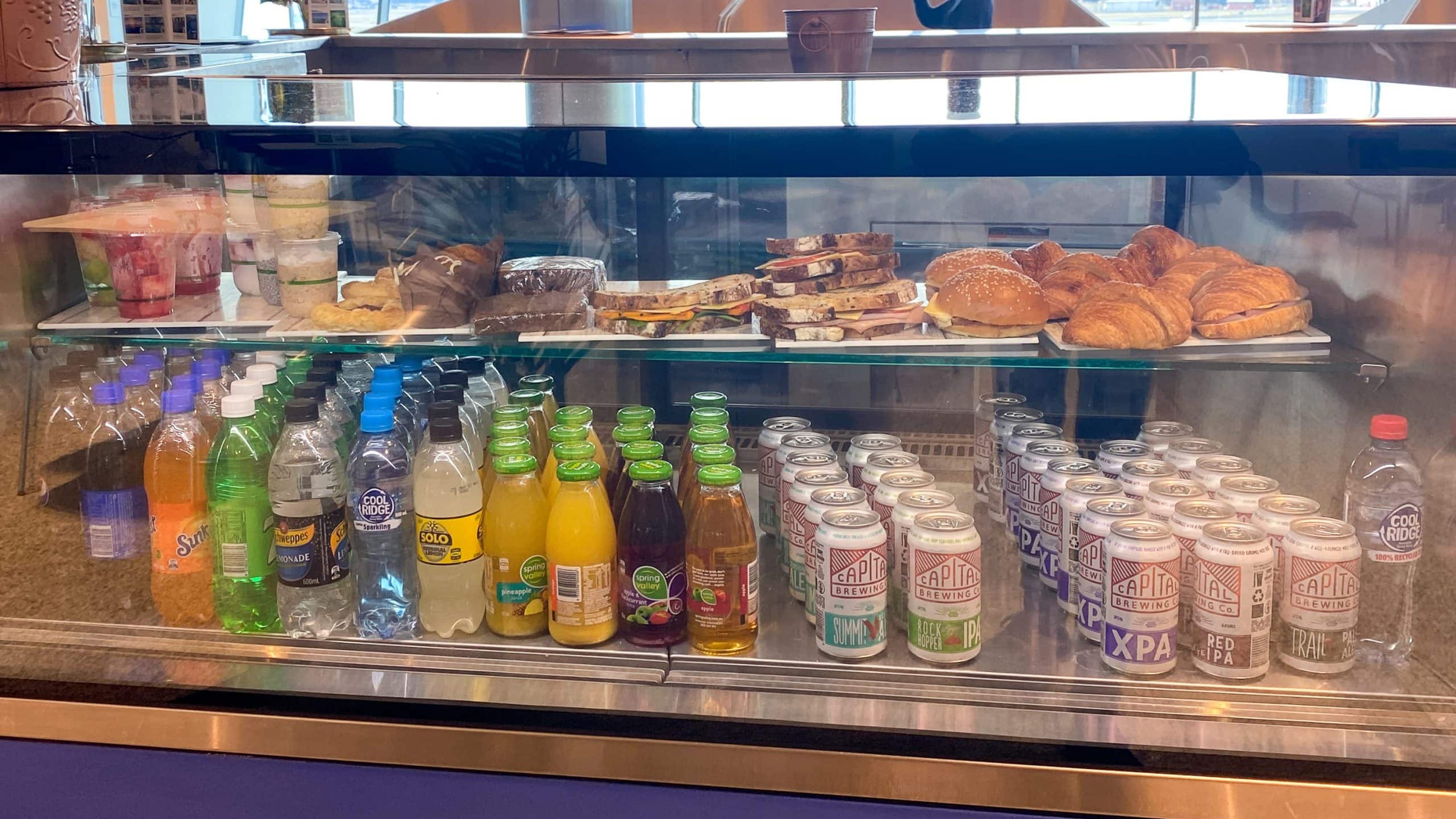 As you’d expect from a cafe, there was a good range to choose from. That included muffins, banana bread, sandwiches and croissants. A respectable selection of both alcoholic and non-alcoholic beverages is available for purchase, as well as barista coffee and hot drinks. The downside is prices are quite steep.