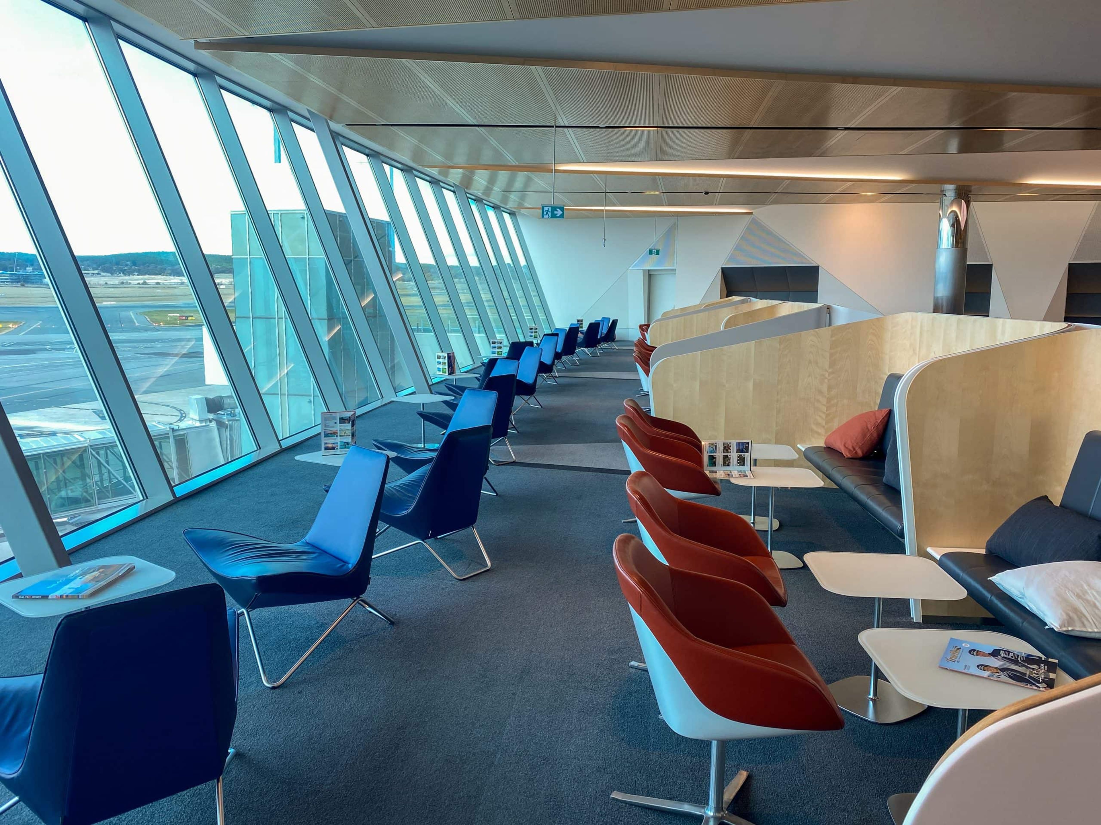 This space takes the cake with an abundance of natural light thanks to angled floor to ceiling windows that run along the far end of the lounge. From here you’ll find impressive views of the apron and runway, as well as aircraft being serviced from the gates below.