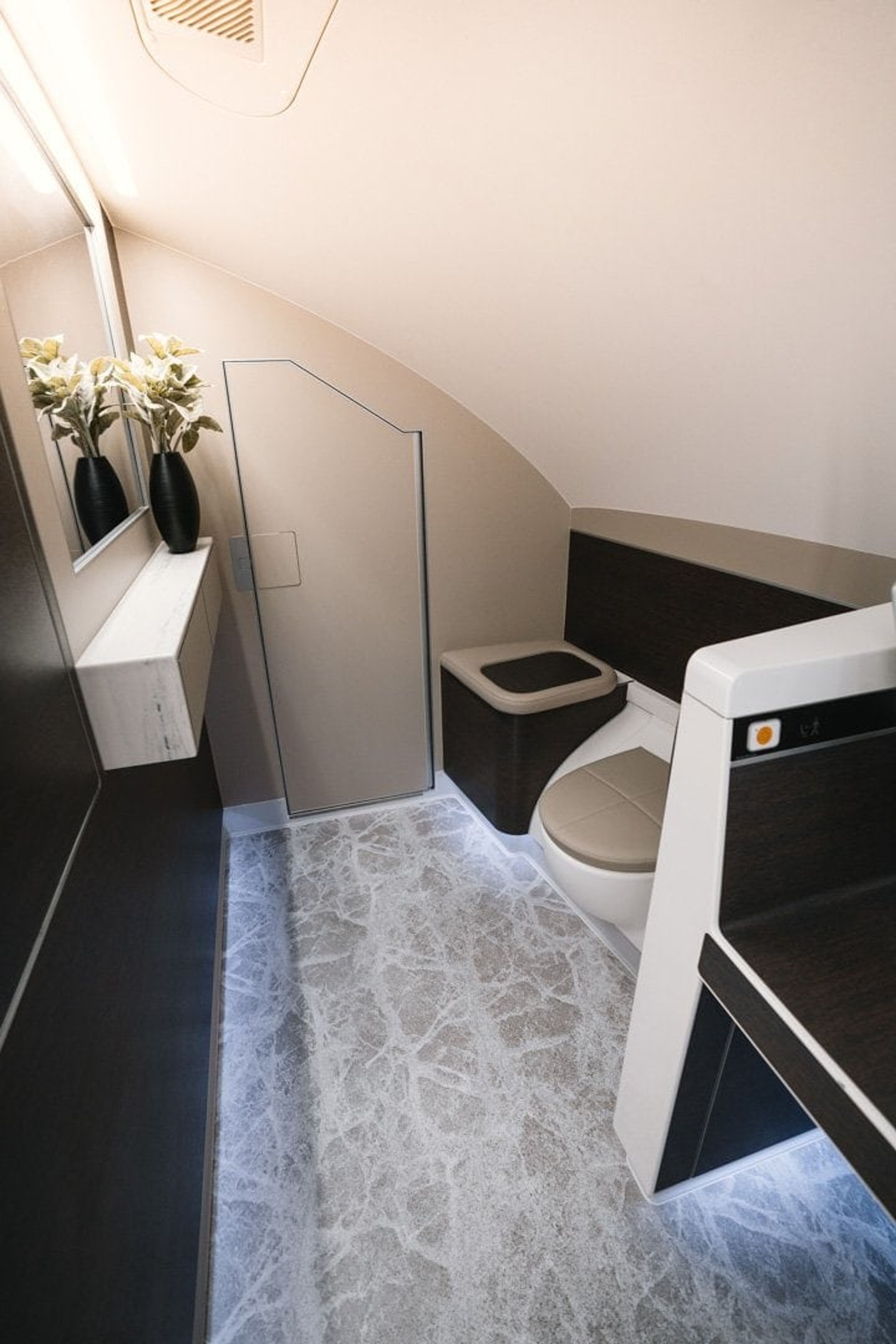 1F / 2F and 1A 2A are linked together with a divider which comes down to make way for a double bed; the ultimate aviation geek’s dream.