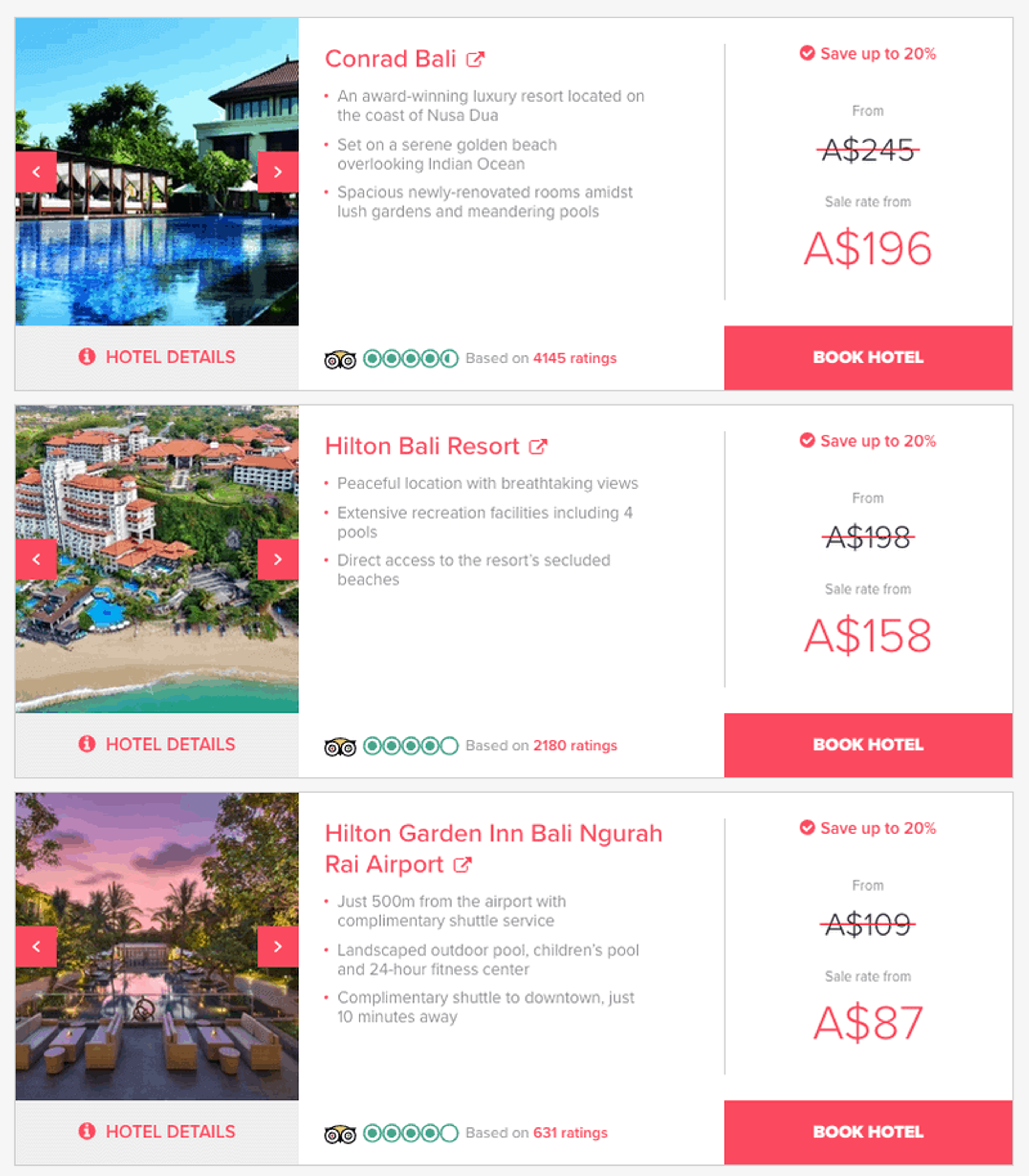 In Bali you have the choice of 3 Hilton hotels, and all three are on sale with 20% off. Conrad Bali would probably be my preferred choice, and it’s excellent value at only $196 per night!