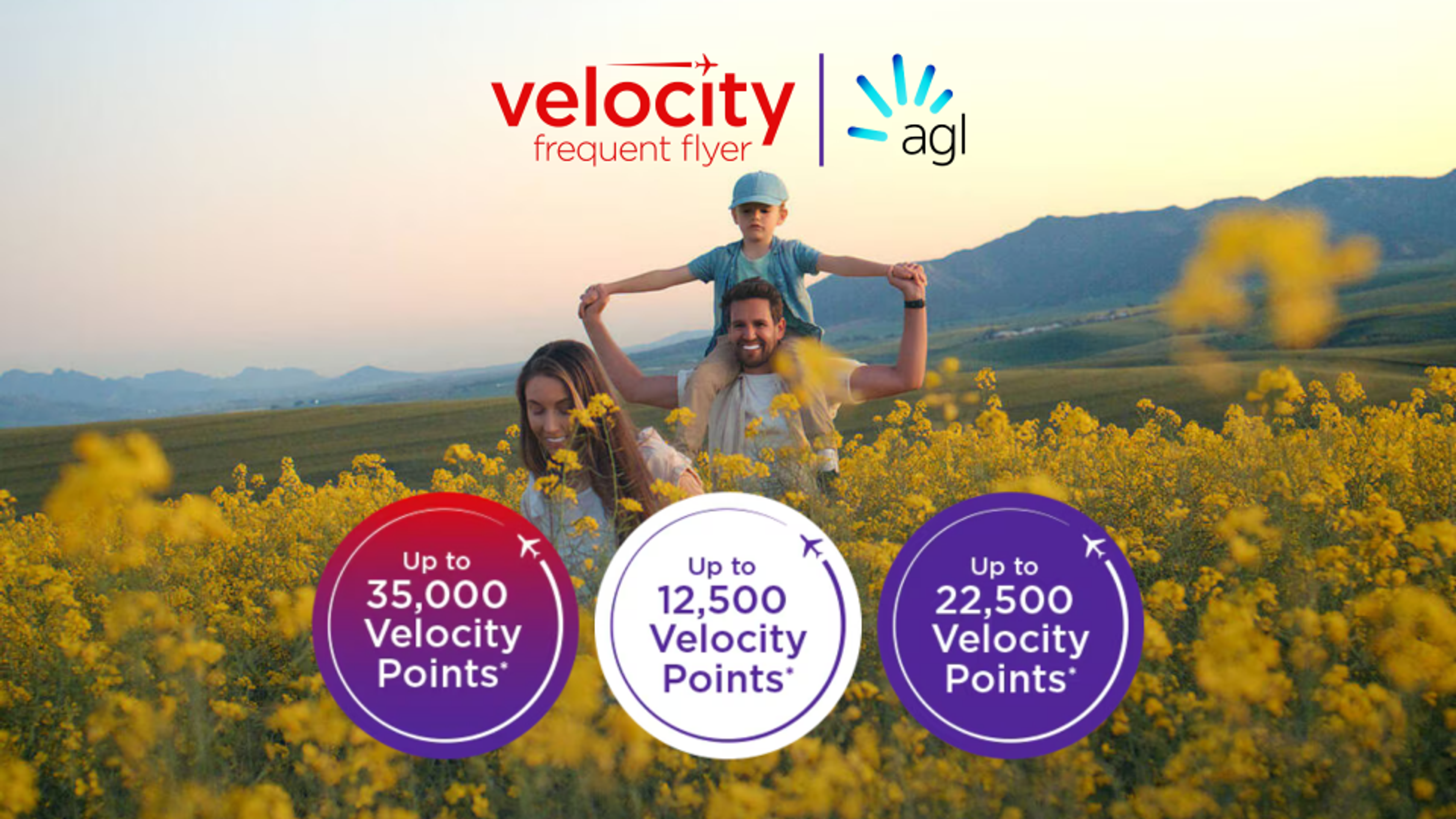New customers: Click here to sign up for the Velocity AGL offer online. Alternatively, call AGL on 131 245. Remember to enter or provide over the phone your Velocity number before joining.