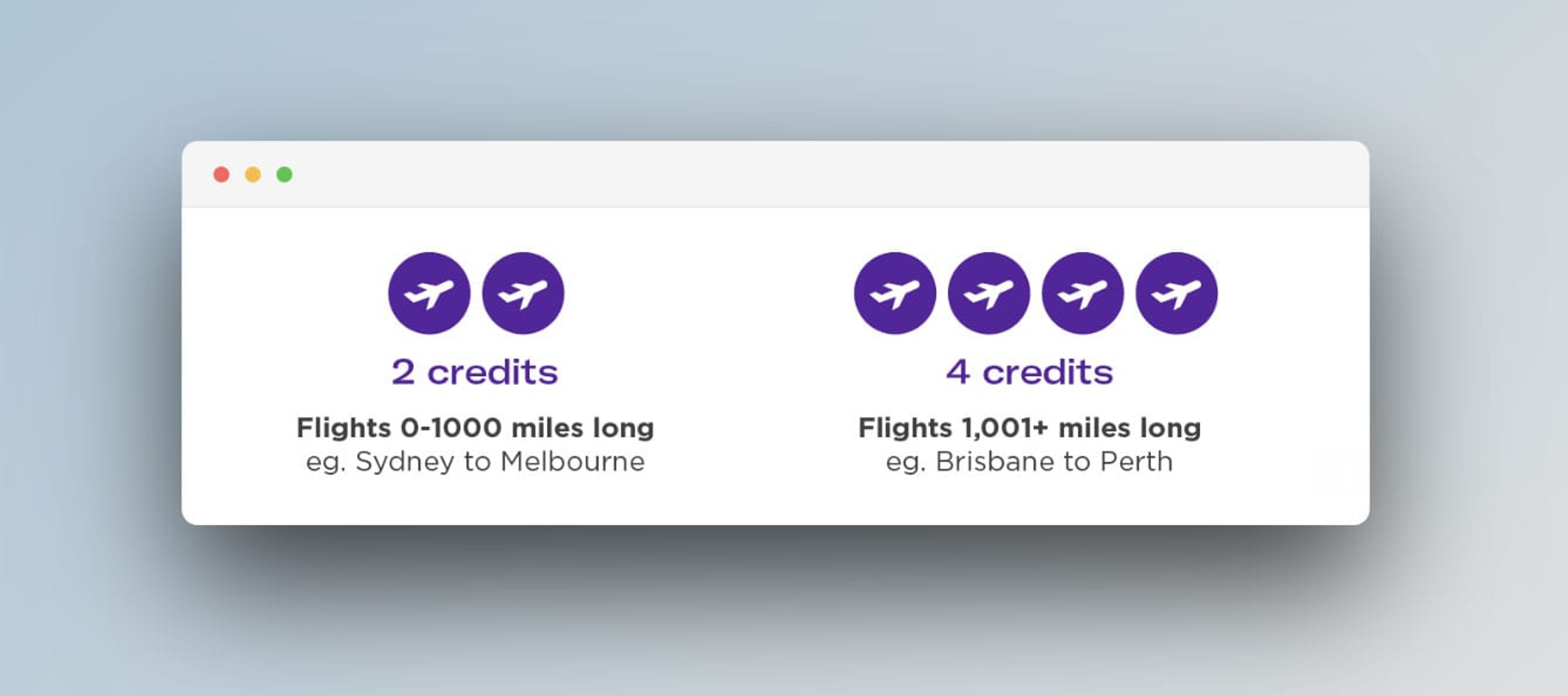 For all flights up to 1,000 air miles, you will need 2 credits (vs. 1 credit needed on Flex fares). For all flights over 1,000 air miles, you will need 4 credits (vs 1 credit required on a Flex ticket).
