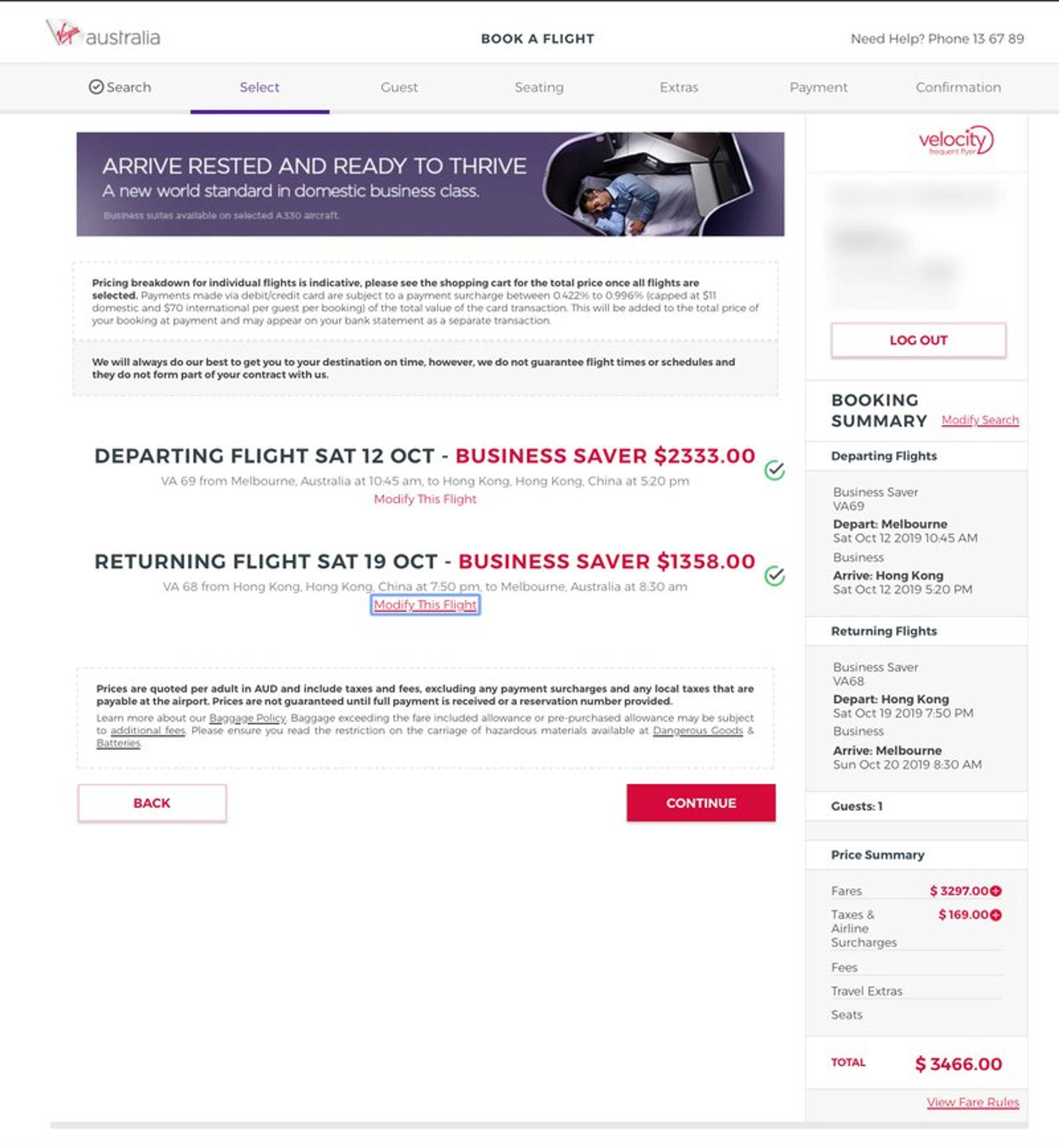 I ran a dummy booking from Melbourne to Hong Kong in business class an here’s what I got: