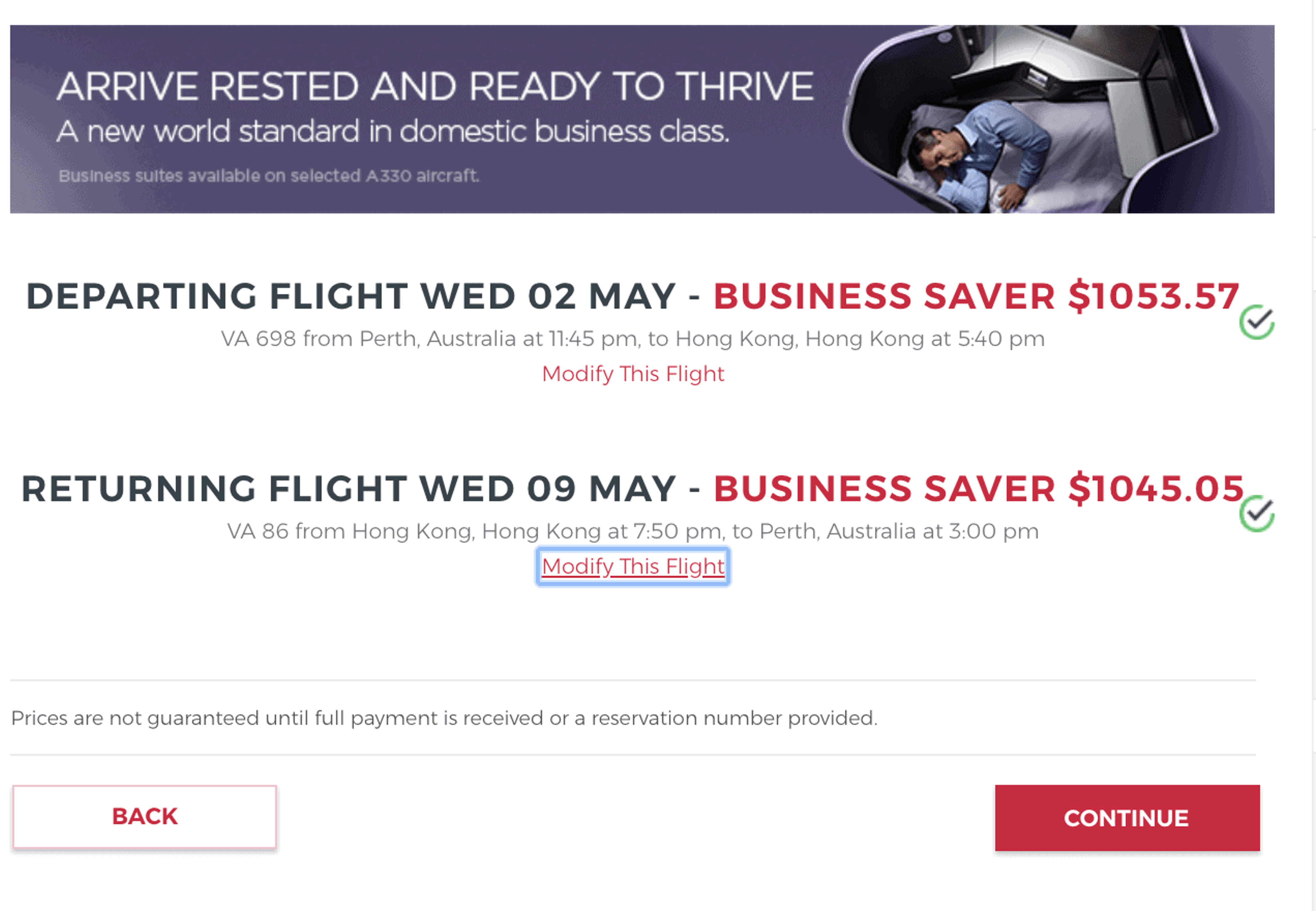Virgin Australia The Business To Hong Kong Return For Only $ 1748.34