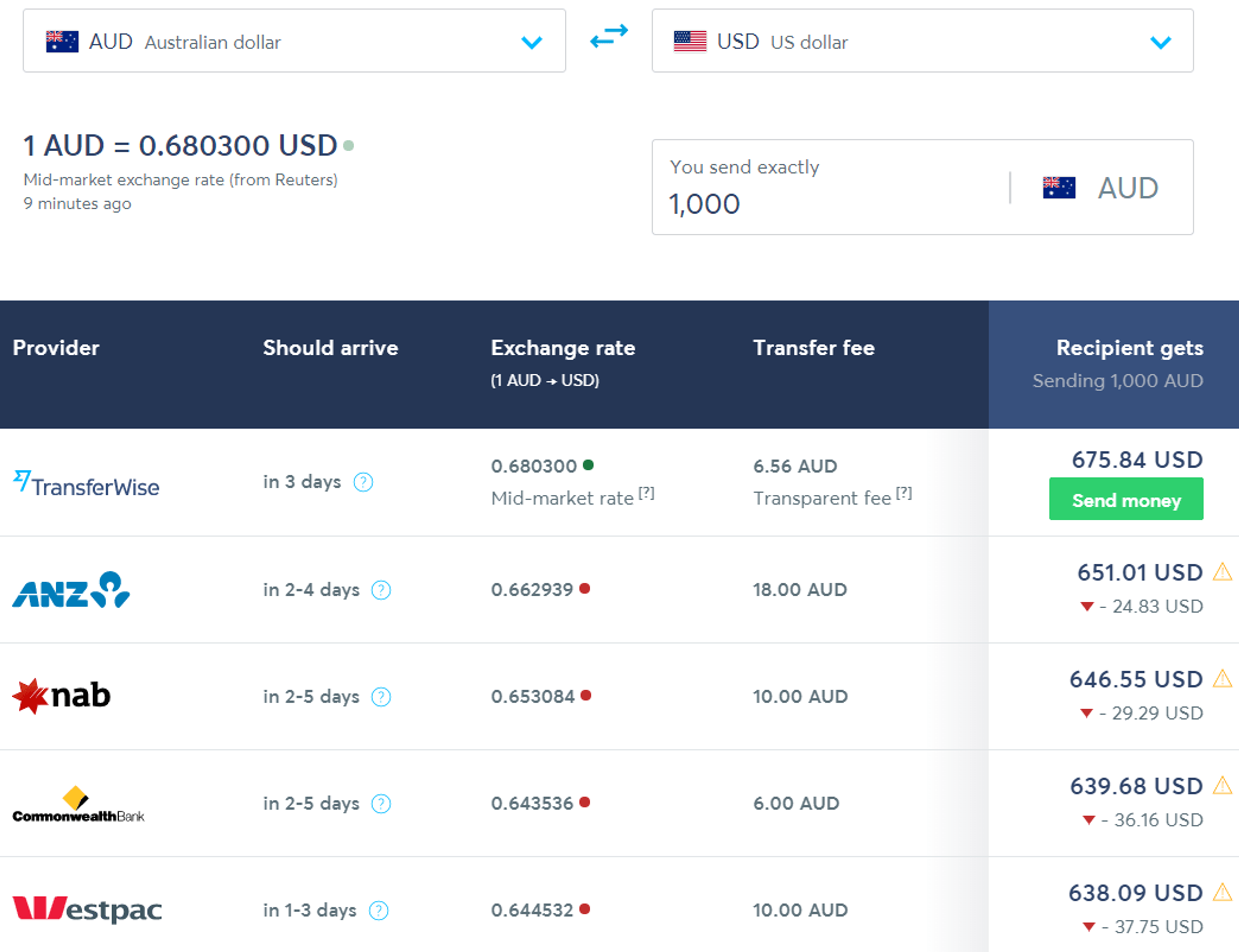 Although it’s always best to compare your options, Wise will often come out on top thanks to their true mid-market rates and little fees.